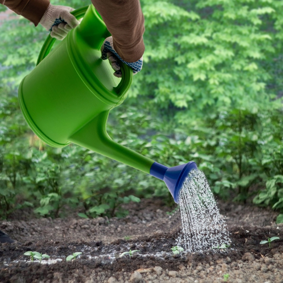 В комплект входит съемная выпуклая насадка-рассеиватель, позволяющая равномерно орошать посадки без риска размыть землю и оголить корни.