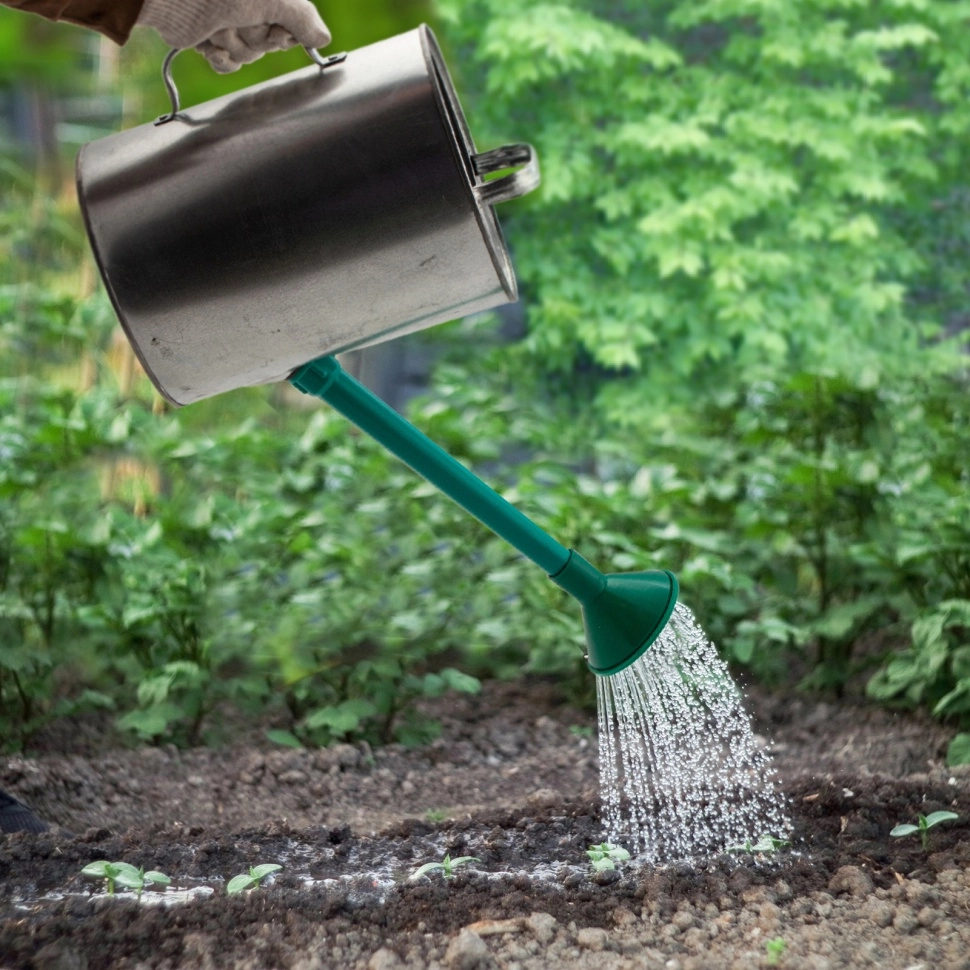 Две удобные ручки помогают правильно распределить вес наполненной лейки, облегчая ее транспортировку, а также подъем и наклон при поливе.