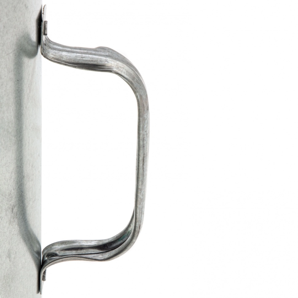 Лейка изготовлена из оцинкованной стали, поэтому не боится коррозии и воздействия солнечных лучей.
