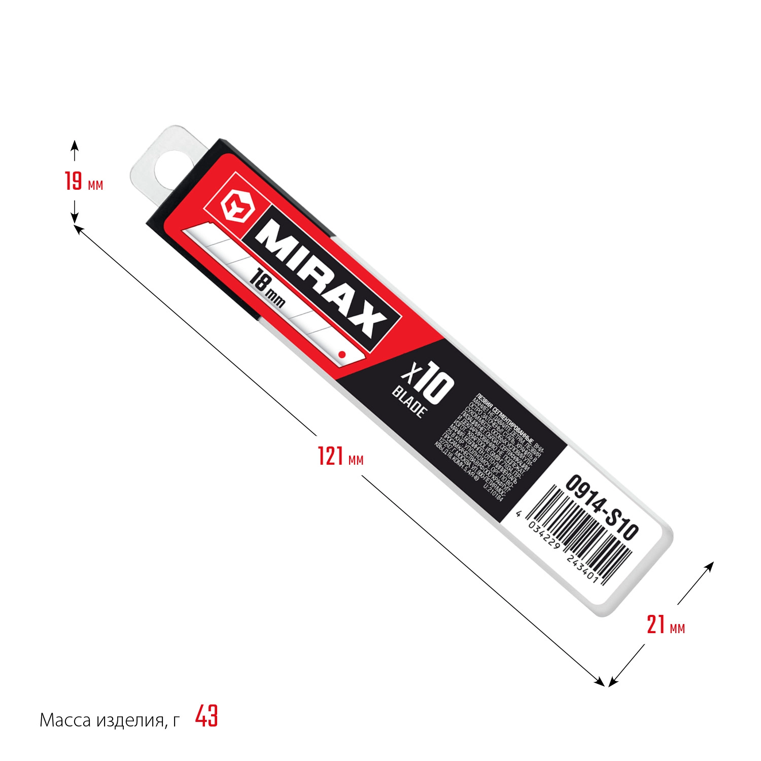 ПроизводителиЛезвие для ножа сегментированное 18мм (10шт.), в боксе (0914-S10) MIRAX