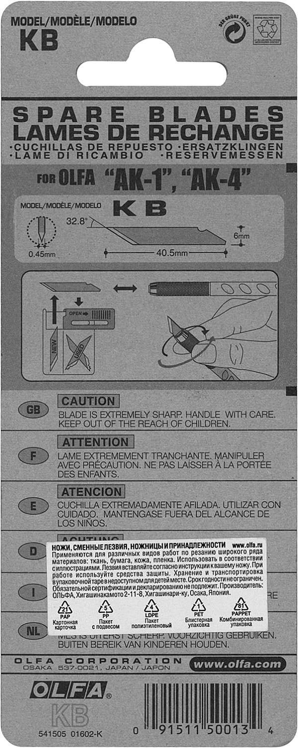 ПроизводителиЛезвие перовое для AK-1, 11х6х0,45мм, 25шт (OL-KB) OLFA