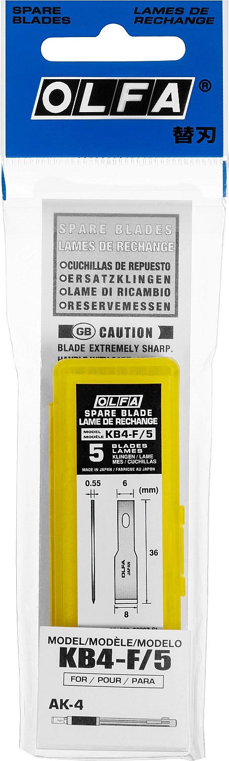 ПроизводителиЛезвия лопаточные для ножа AK-4, 6(8)х35.5х0.55мм, 5шт. (OL-KB4-F/5) OLFA