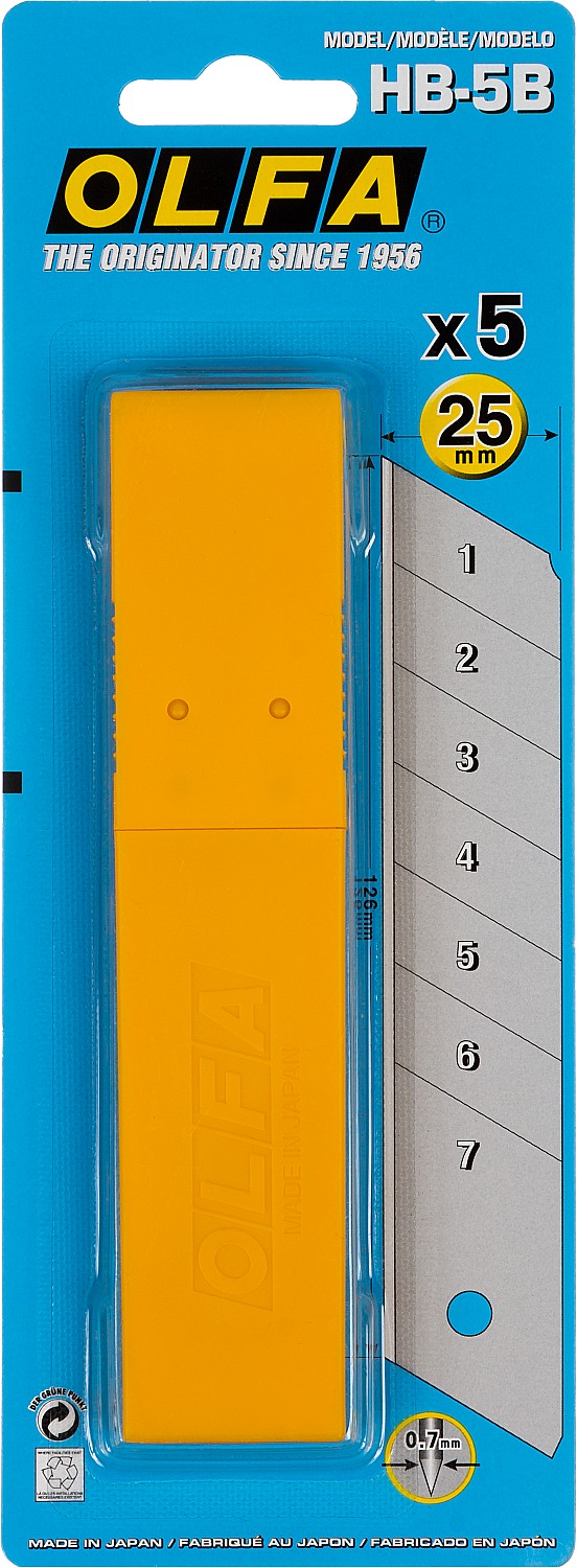 ПроизводителиЛезвие для ножа сегментированное 25мм (5шт.) (OL-HB-5B) OLFA