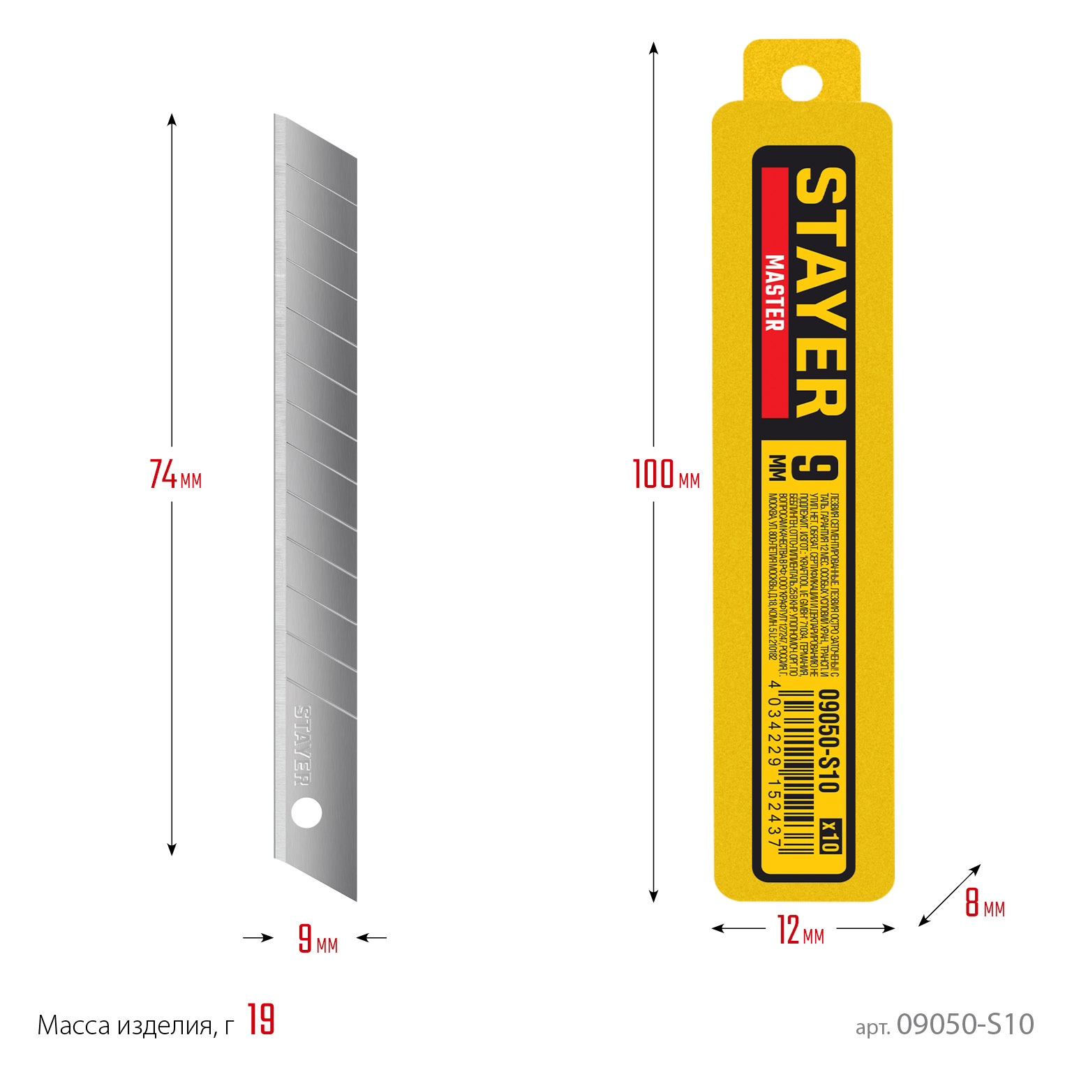ПроизводителиЛезвие для ножа сегментированное 9мм (10шт.), в боксе (09050-S10) STAYER