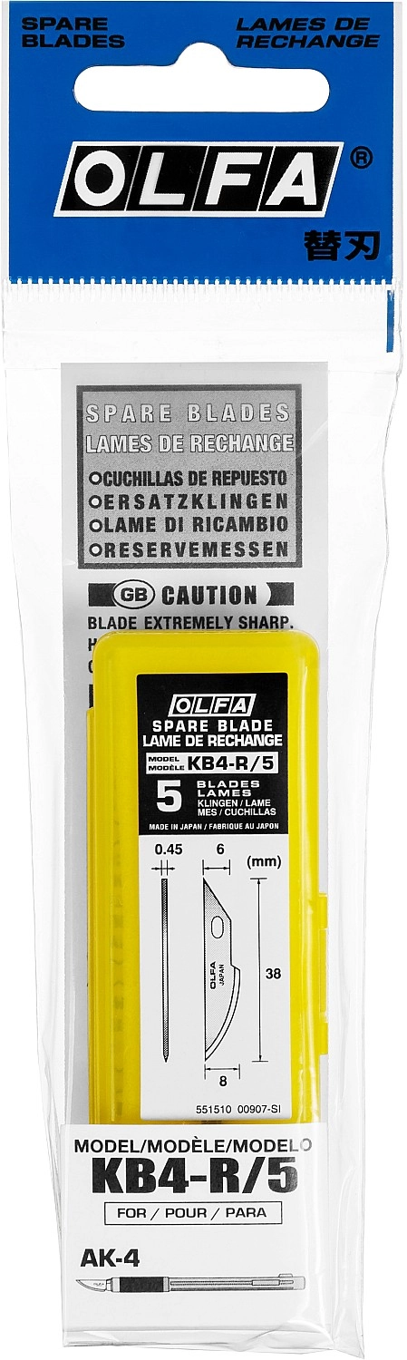 ПроизводителиЛезвия закругленные для ножа AK-4, 6(8)х38х0,45мм, 5шт (OL-KB4-R/5) OLFA