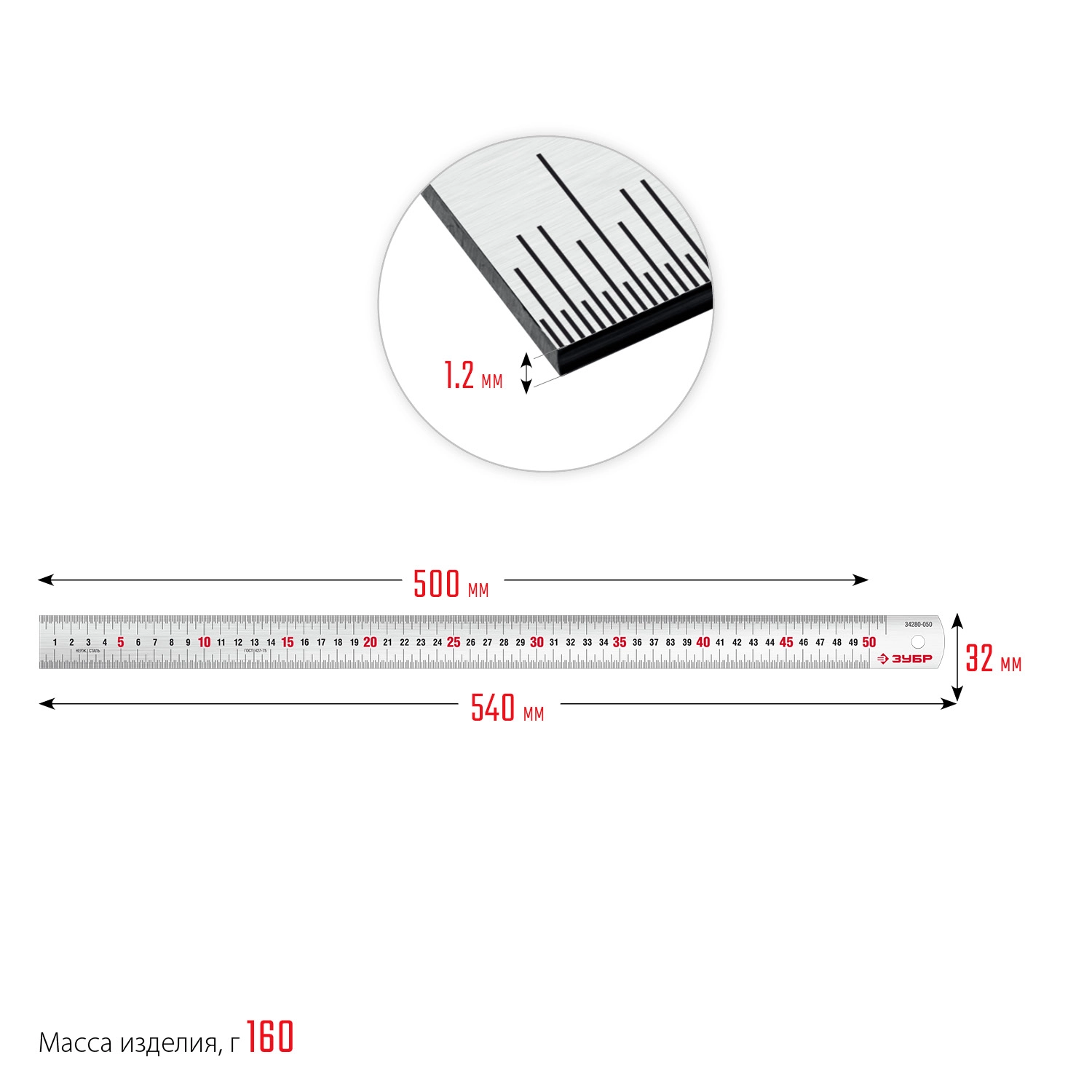 ПроизводителиЛинейка металлическая 500мм, нерж., усиленная "Про-50" (34280-050) ЗУБР