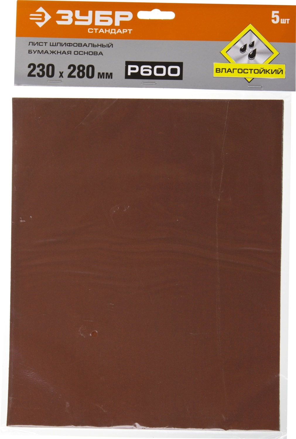 ПроизводителиЛист шлифовальный "СТАНДАРТ" на бумажной основе, водостойкий 230х280мм, Р600, 5шт (35417-600) ЗУБР