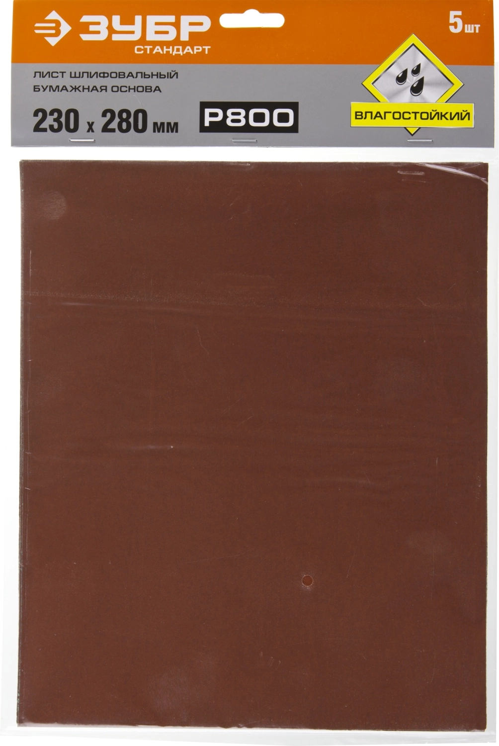 ПроизводителиЛист шлифовальный "СТАНДАРТ" на бумажной основе, водостойкий 230х280мм, Р800, 5шт (35417-800) ЗУБР