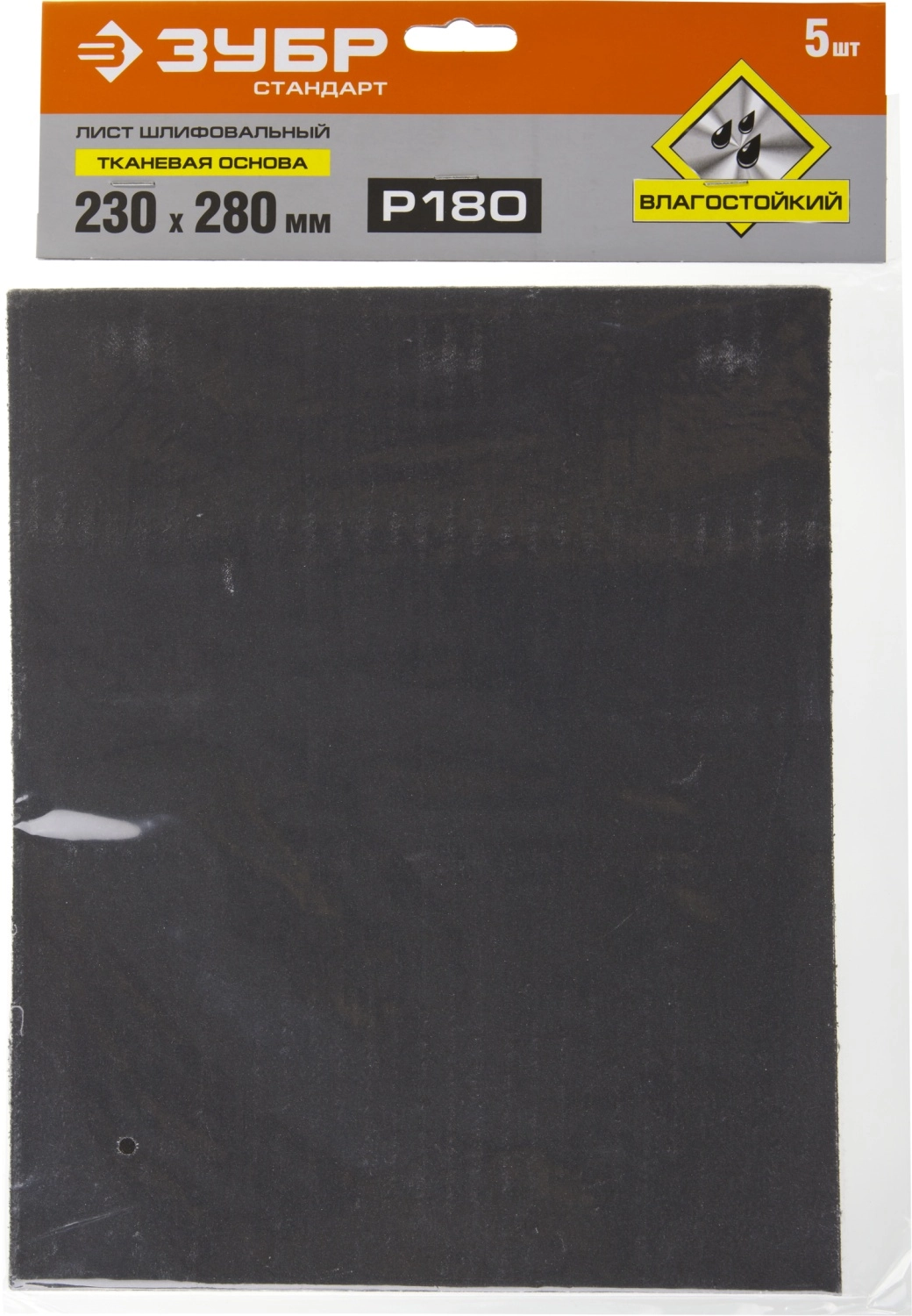 ПроизводителиЛист шлифовальный "СТАНДАРТ" на тканевой основе, водостойкий 230х280мм, Р180, 5шт (35415-180) ЗУБР