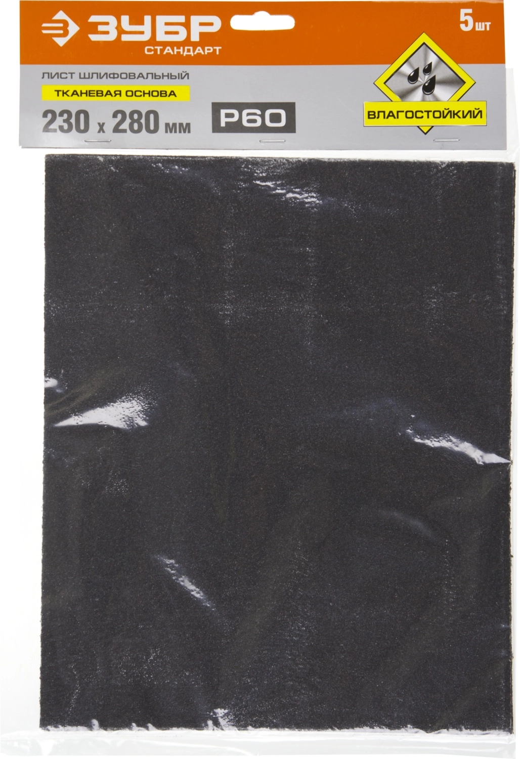 ПроизводителиЛист шлифовальный "СТАНДАРТ" на тканевой основе, водостойкий 230х280мм, Р60, 5шт (35415-060) ЗУБР