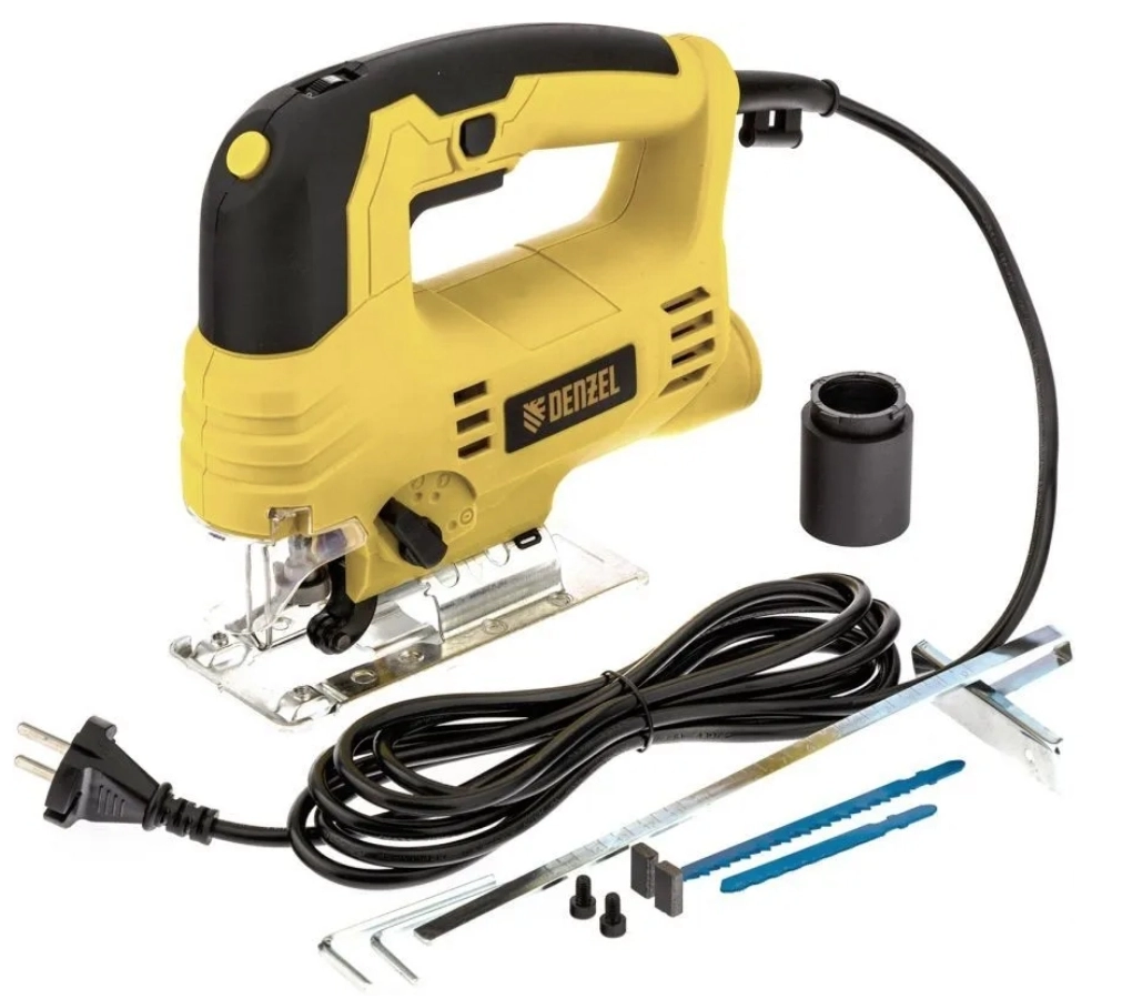 ХарактеристикиАртикул 27101Бренды DENZELСтрана производства КитайПодсветка рабочей зоны естьВес 2.2Питание сетьТип корпуса рукоятка-скобаМощность 550Глубина пропила (дерево) 65Глубина пропила (сталь) 6Глубина пропила (цветные металлы) 12Частота ходов 2800Режим маятникого хода естьРегулировка частоты хода естьАвтоматический сдув опилок естьПодключение к пылесосу естьСистема быстрой замены пилок естьЛазерный маркер нетКоличество пилок 2Кейс нетКомплектации ключЗащита от непреднамеренного включения ДаОписание набора Лобзик электрический ручной; - Пилка для дерева; - Пилка для металла; - Шестигранный ключ; - Направляющая; - Адаптер для подключения пылесоса; - Комплект запасных угольных щеток; - Инструкция по эксплуатации и гарантийный талон.Защитный щиток ДаРегулировка оборотов ДаОписание товара обновлено 28.01.2026 16:49:14Штрихкод (EAN-13): 4044996172453