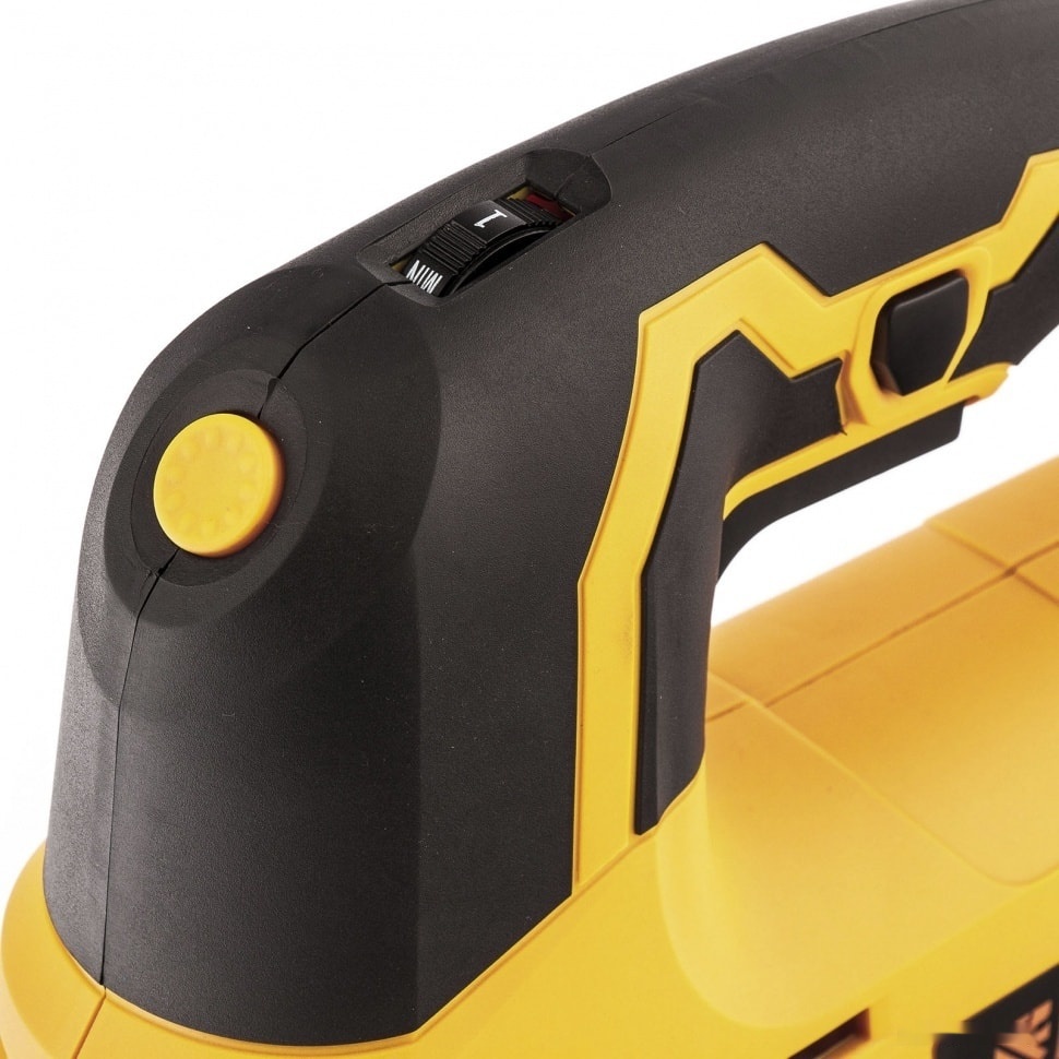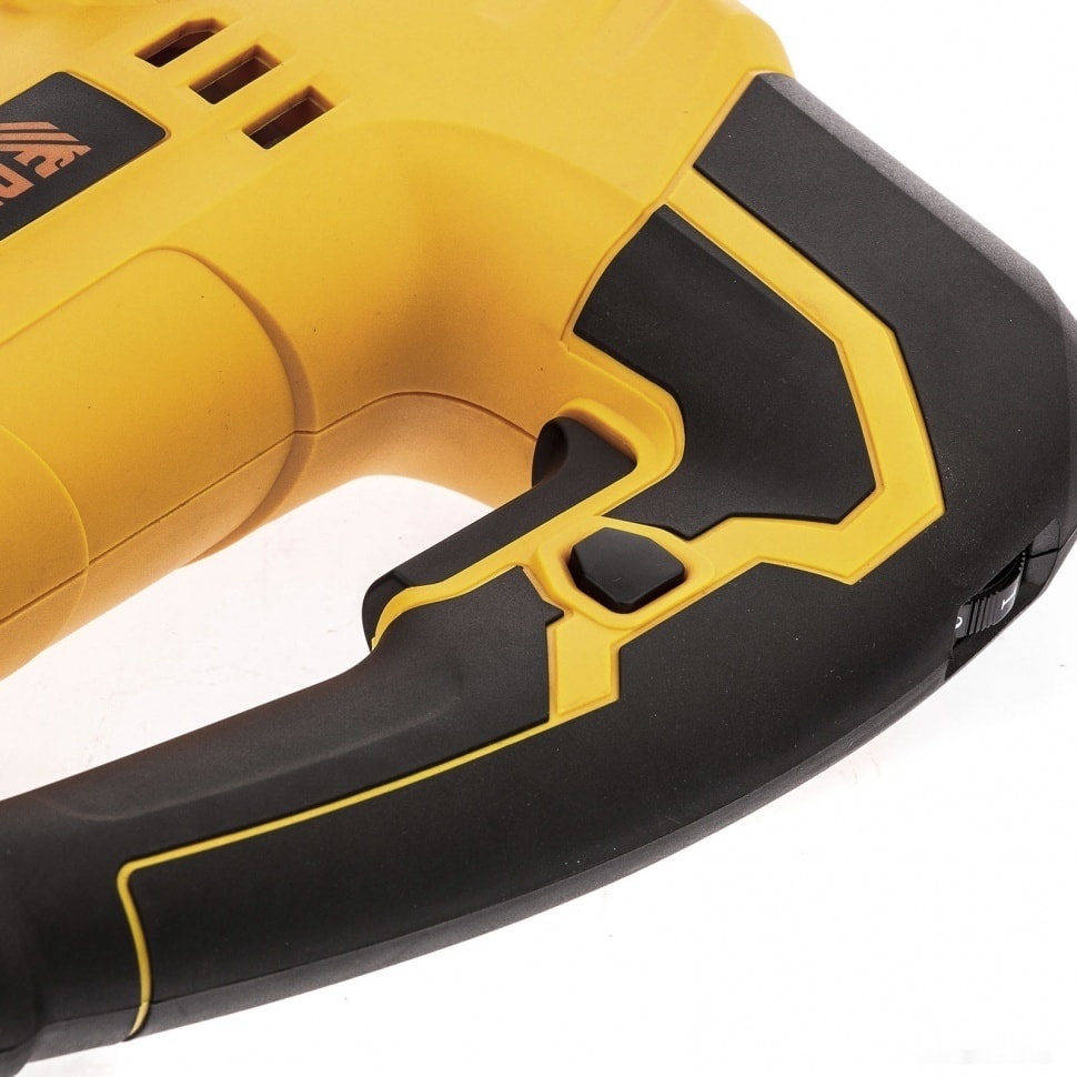 - Электронная регулировка частоты ходов — можно выбрать оптимальную скорость реза в зависимости от обрабатываемого материала.