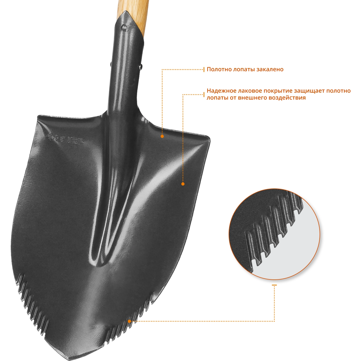 Штыковая лопата является является простым и универсальным инструментом для широкого фронта работ, от перекопки твердых почв до перерезания небольших корней;