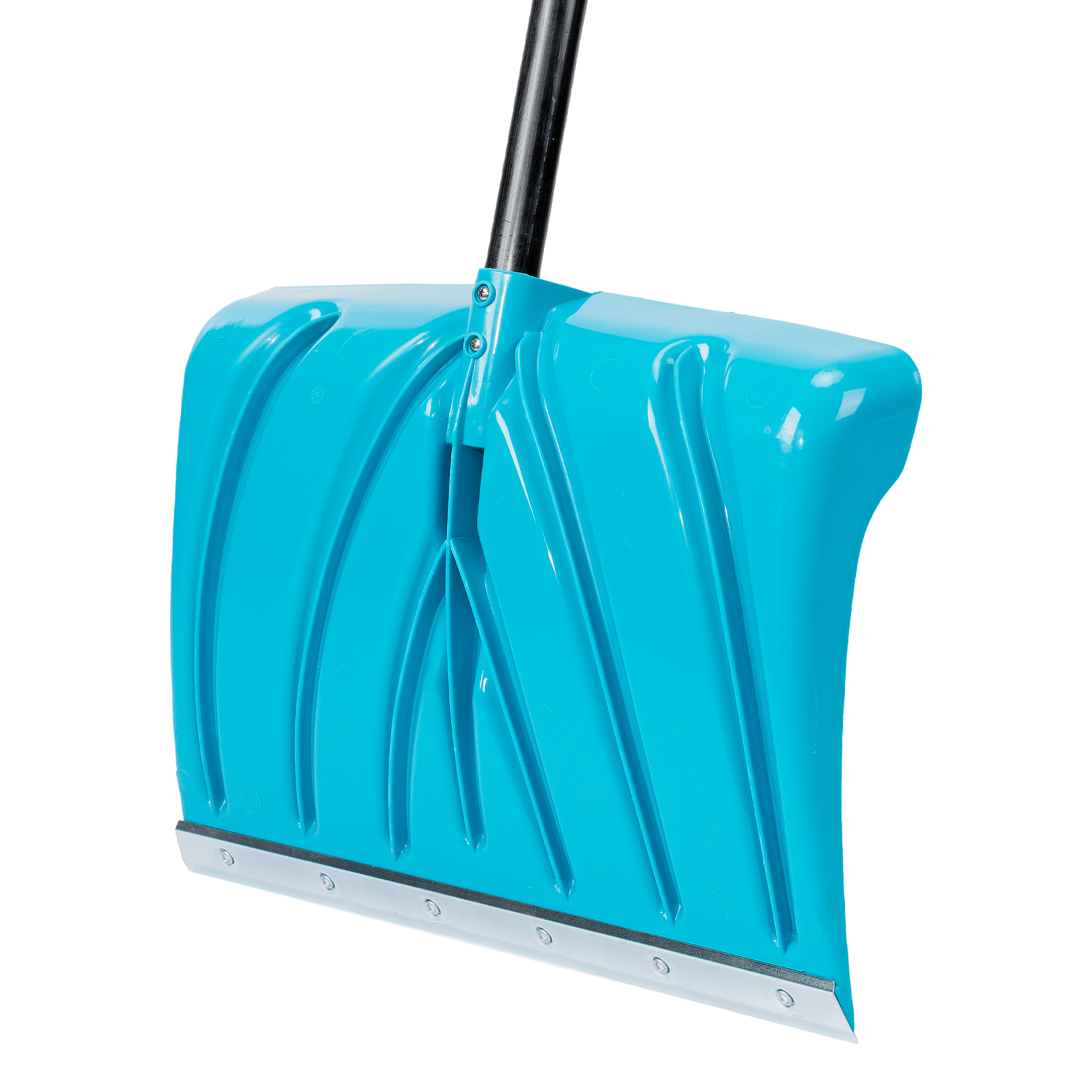 - Эффективная работа — углубленный ковш с бортиками вмещает много снега, а стальная защитная накладка предотвращает износ кромки и облегчает очистку слежавшегося снега и наста.