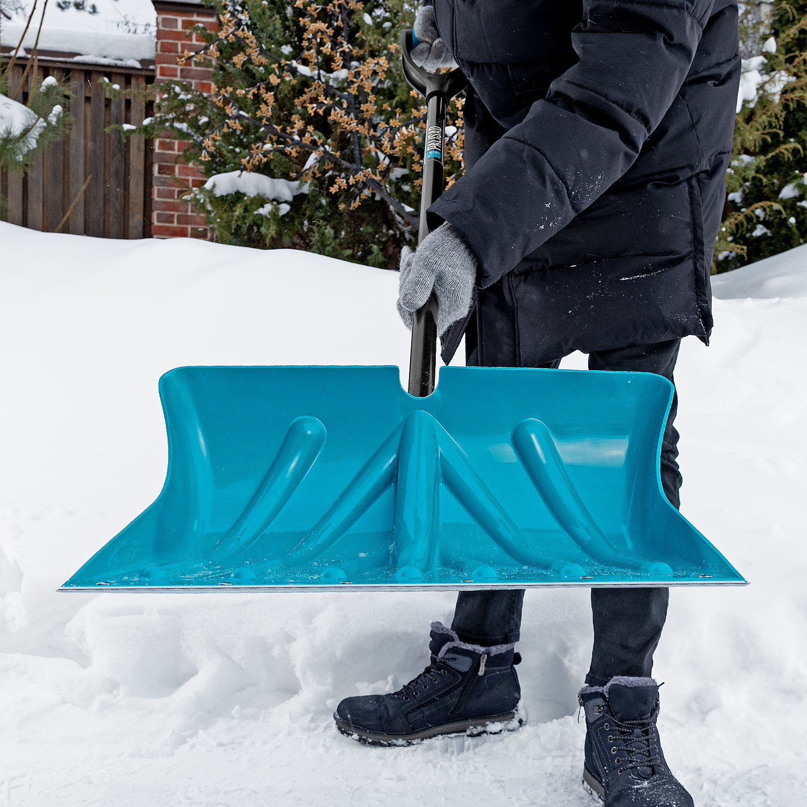 - Благодаря стальной окантовке кромки ковша лопата легко справляется с плотным снегом и настом.