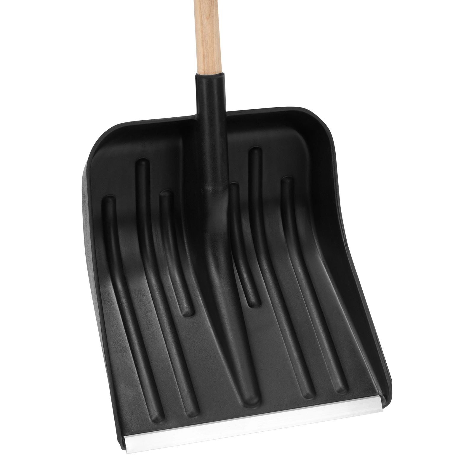 - Эффективная работа — углубленный ковш с бортиками вмещает много снега, а защитная накладка из алюминиевого сплава предотвращает износ кромки и облегчает очистку слежавшегося снега и наста.