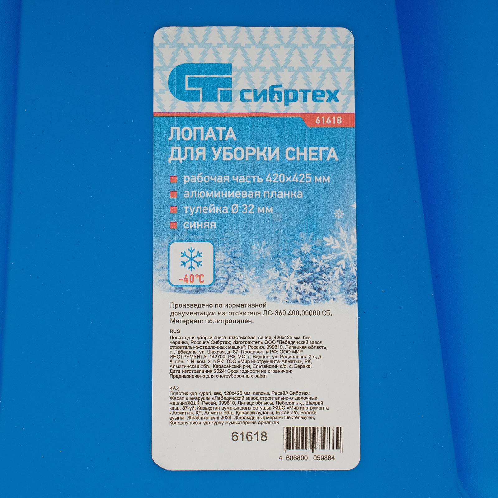 ПроизводителиЛопата снеговая пластиковая, синяя, 420*425мм, без черенка (61618) СИБРТЕХ