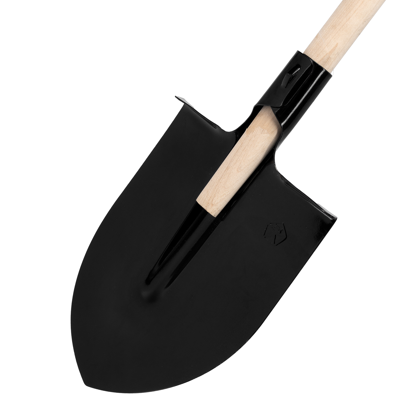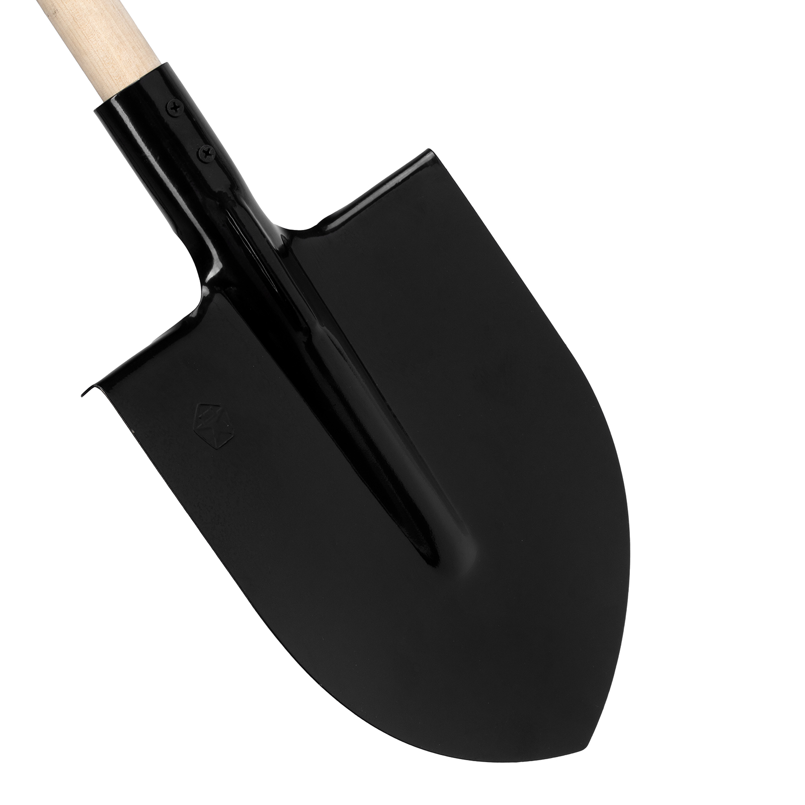 Верхняя кромка рабочего полотна имеет закругленную форму, что облегчает работу, т.к лопата легко проникает в грунт.
