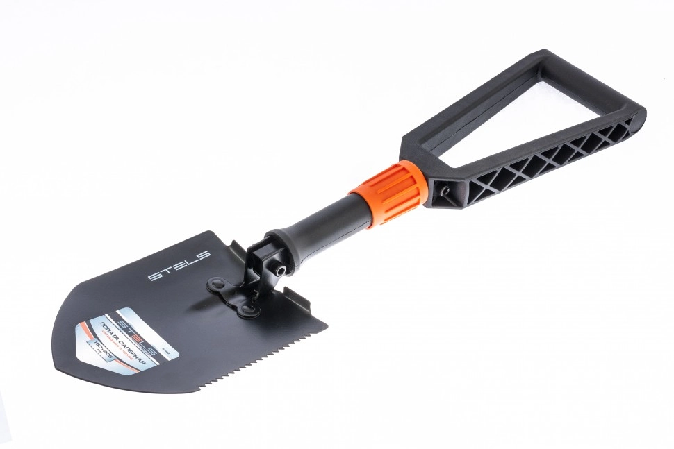 Складная походная лопата Stels 61462 размером 150 х 205 х 253-590 мм, с пластиковой рукояткой, в чехле, пригодится садоводу, автомобилисту и туристу для проведения земляных работ.