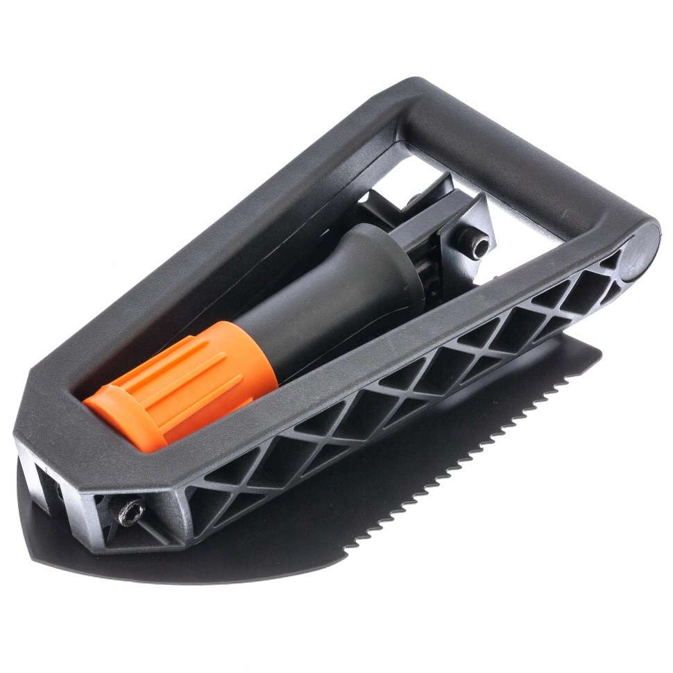 Компактность — вес лопаты составляет 770 г, а длина в сложенном виде — 253 мм, поэтому она помещается как в багажник авто, так и в походный рюкзак.