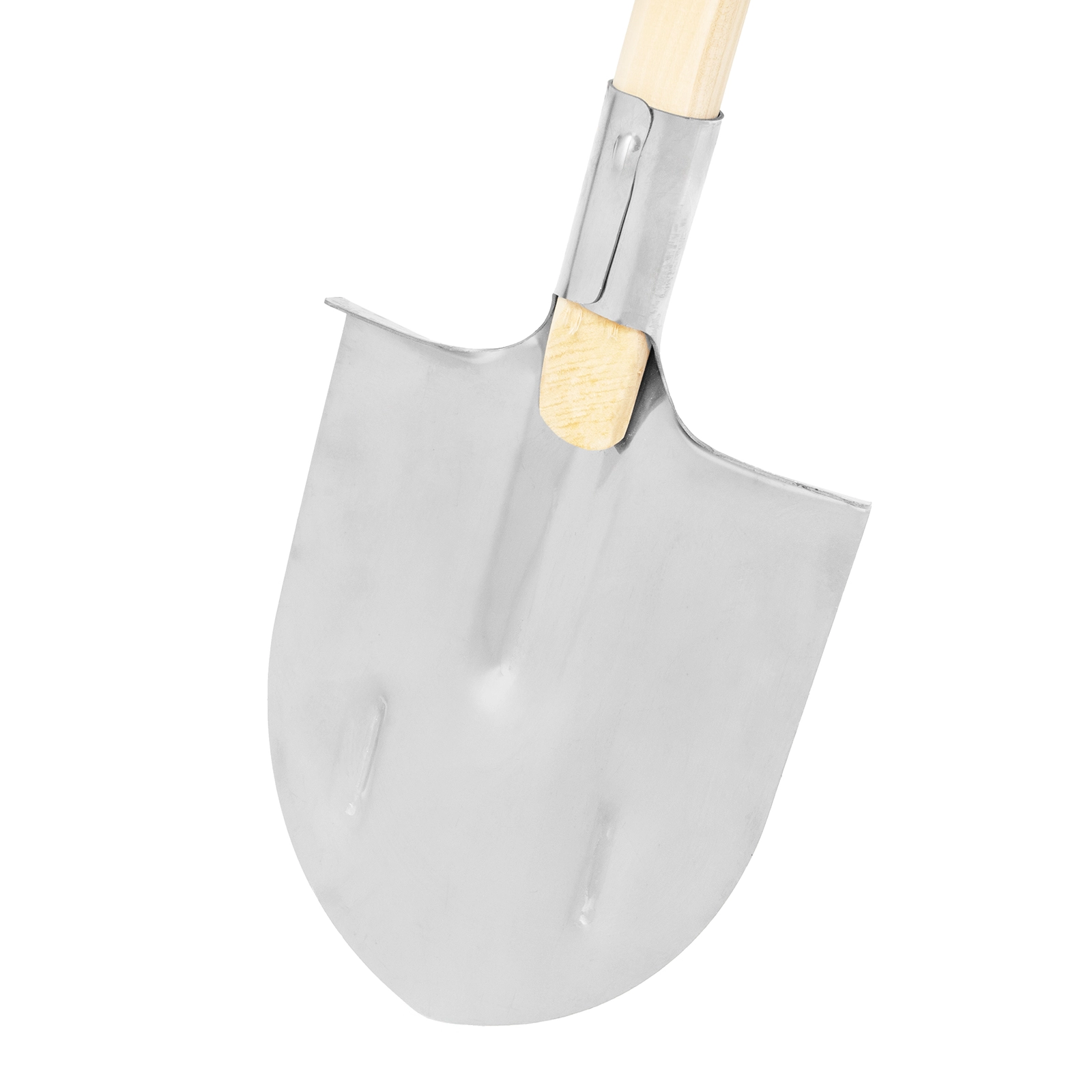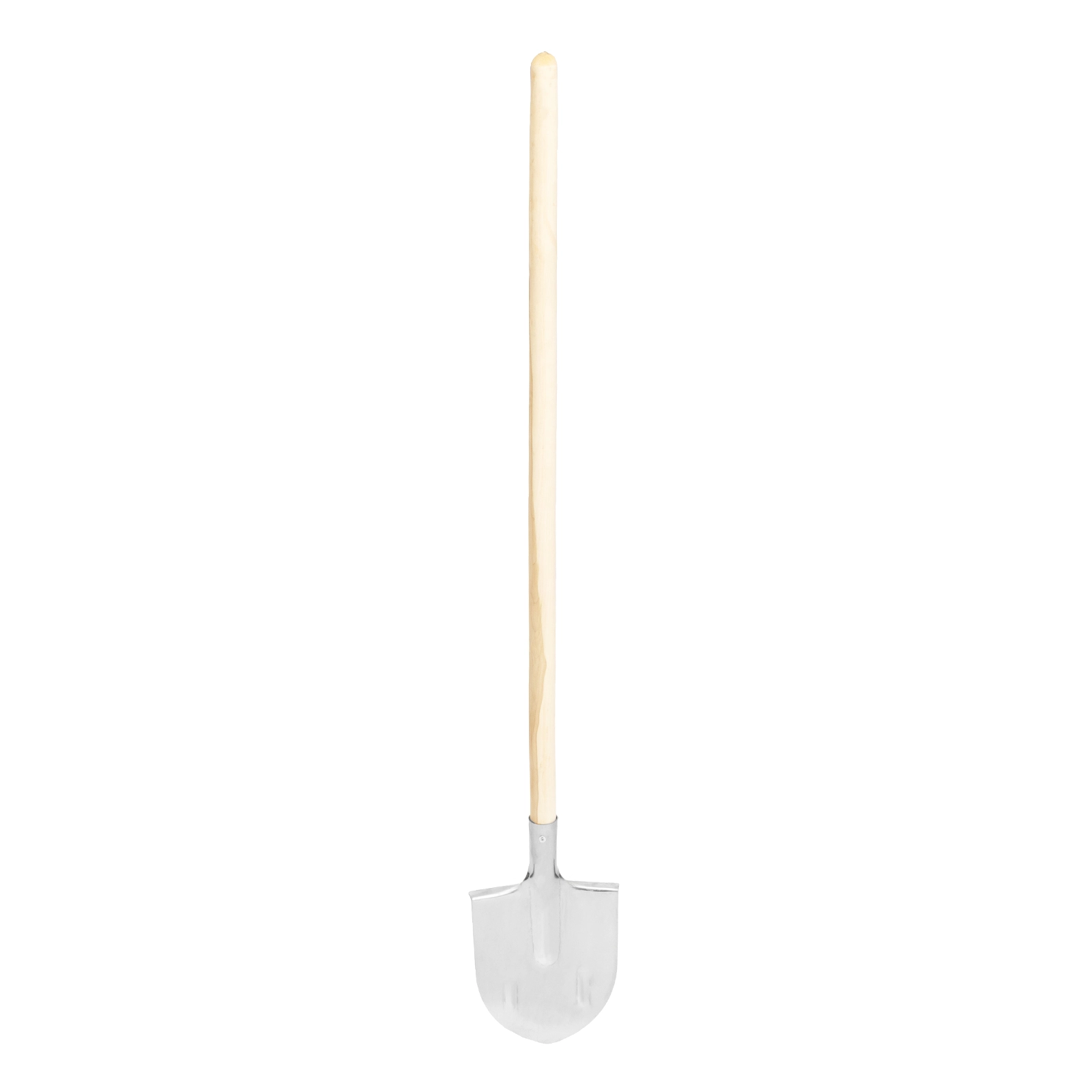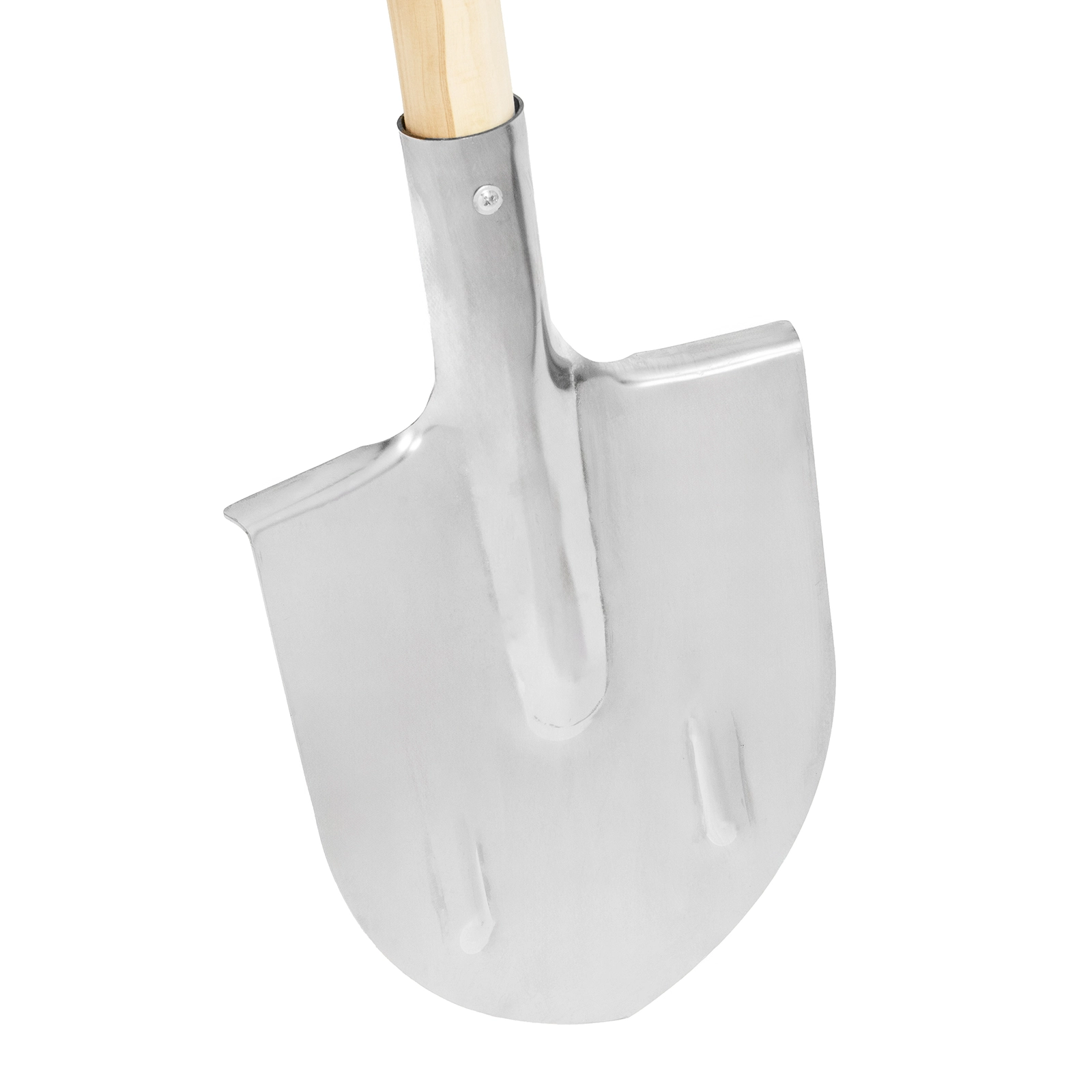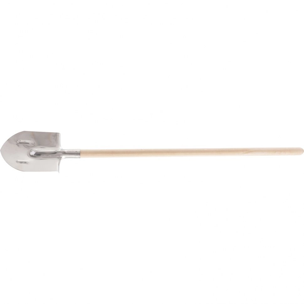 Лопата поставляется в сборе с деревянным черенком, надежно закрепленным на саморезы.
