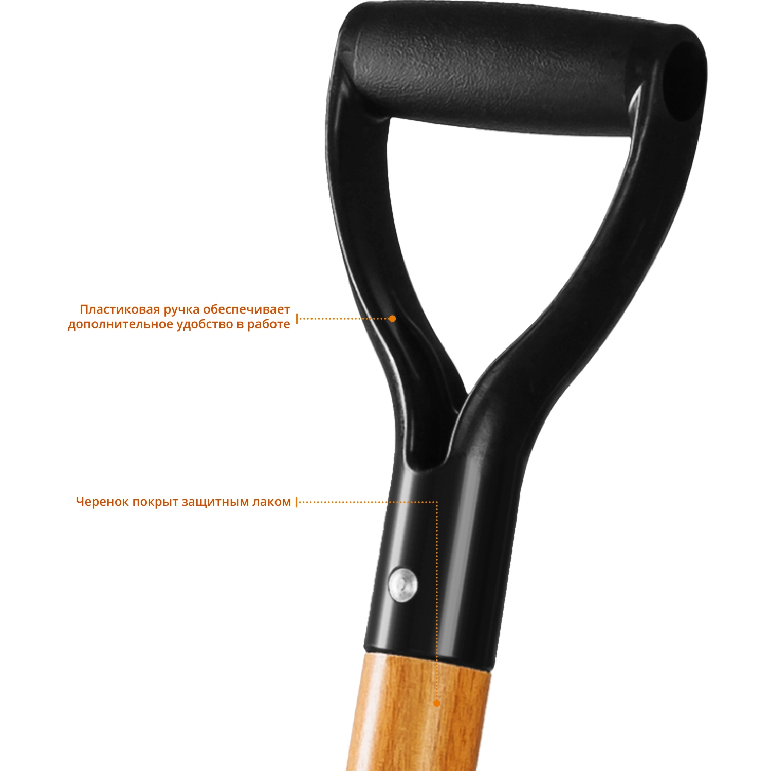 Штыковая лопата является является простым и универсальным инструментом для широкого фронта работ, от перекопки твердых почв до перерезания небольших корней;