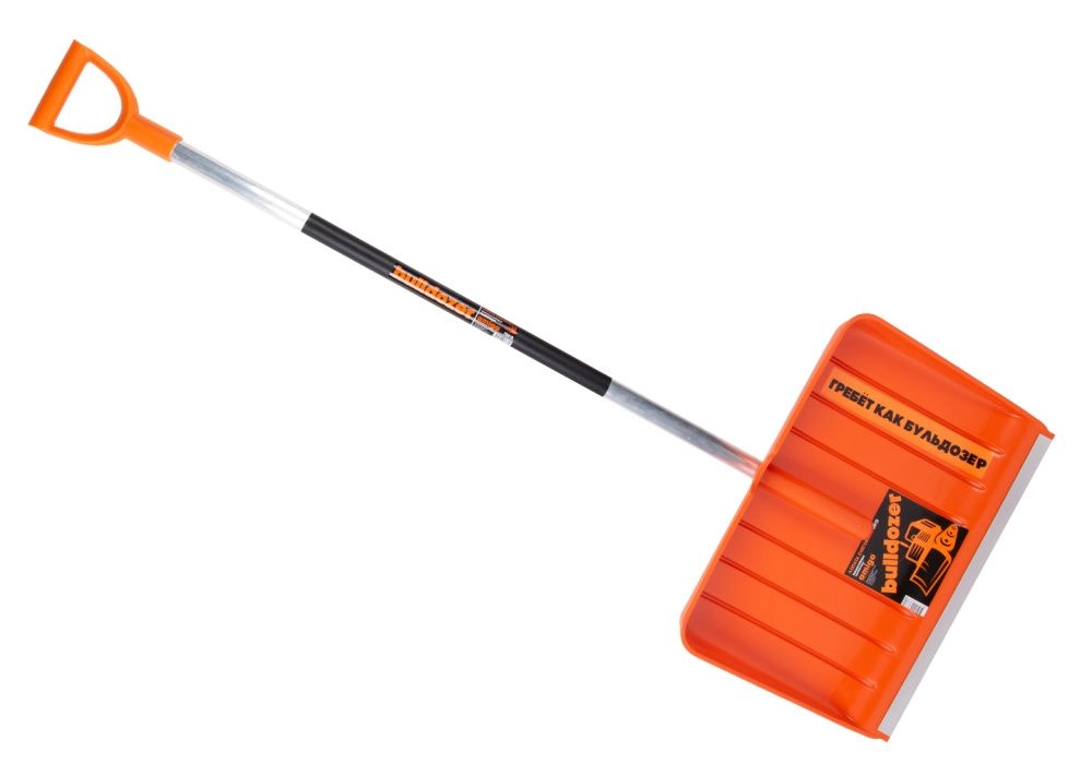ПроизводителиЛопата снеговая пласт., 390*550мм, с алюм. планкой и черенком, D-ручка (78013) AMIGO