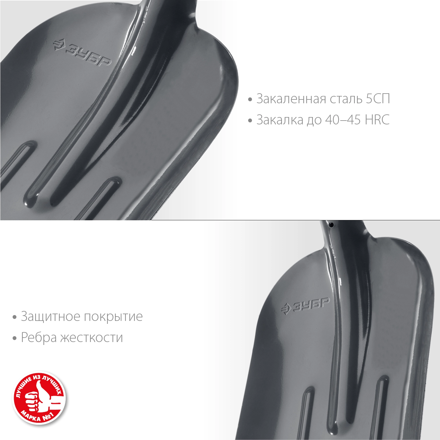 ПроизводителиЛопата совковая ЛСП с ребрами жесткости, 1.6 мм, закаленая, без черенка (39428) ЗУБР