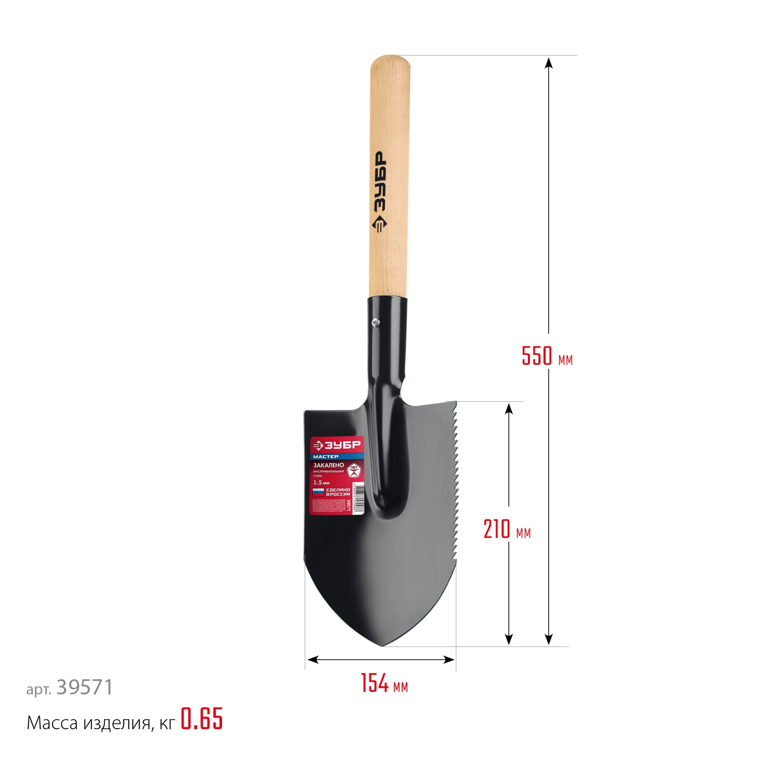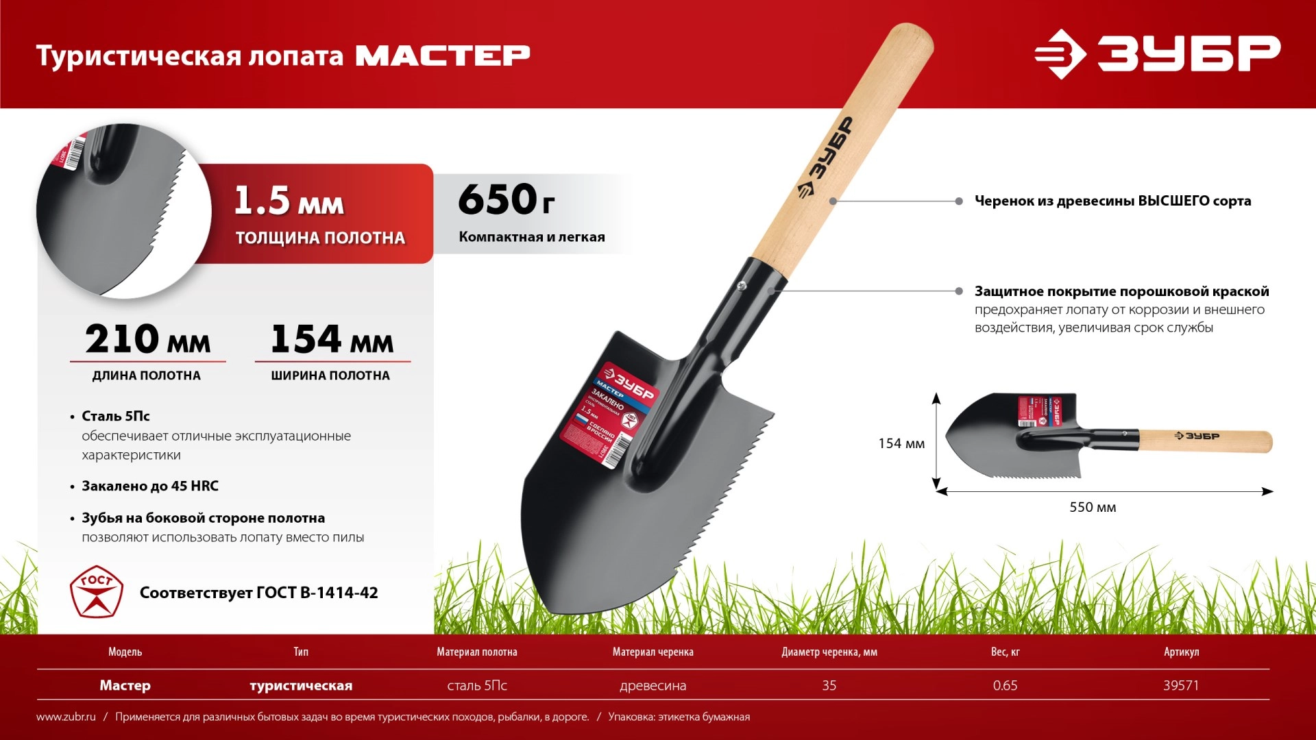 ПроизводителиЛопата туристическая стальная, закаленная, 210х154х550мм, полотно 1.5мм (39571) ЗУБР