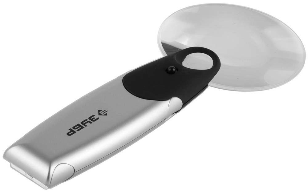 ПроизводителиЛупа ЗУБР "МАСТЕР" конструкция-трансформер, светодиодная подсветка, 2-х/6-ти кратное увеличение, диа