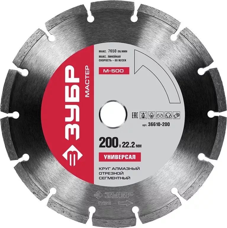 ПроизводителиКруг алмазный сегм. 200х7x22,23 мм Универсал "М-500" (36610-200) ЗУБР