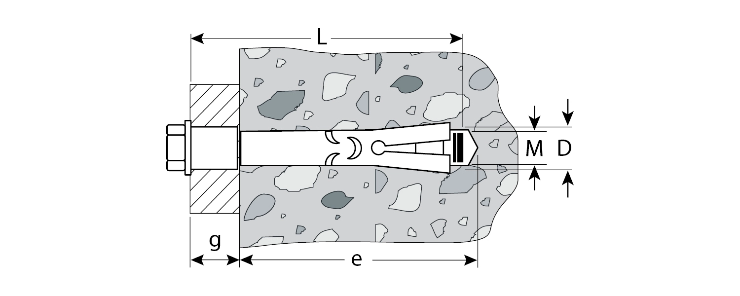 Анкер устанавливается в предварительно просверленное отверстие, расклинивание происходит при вкручивании болта;