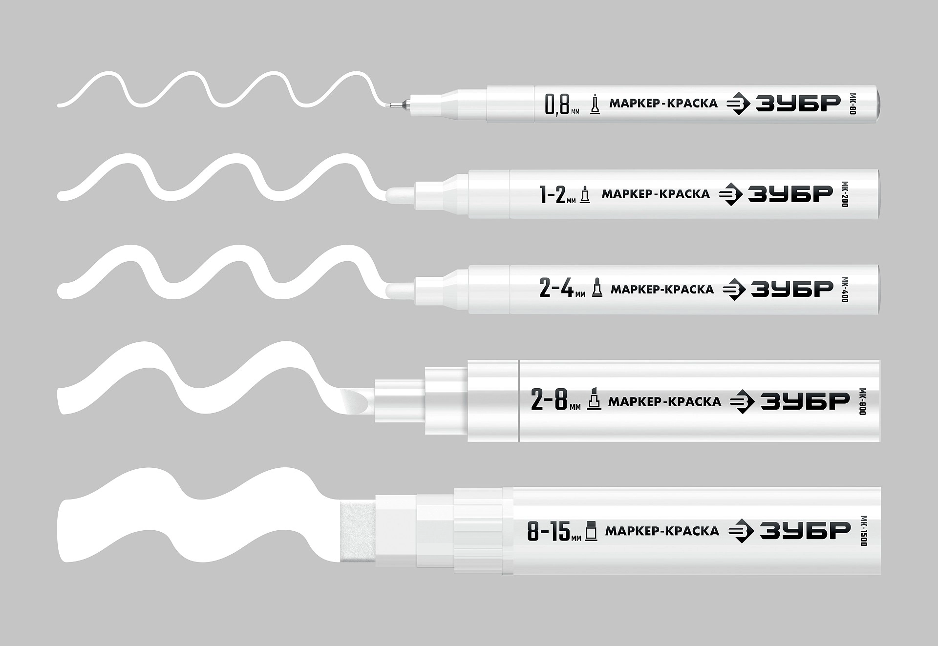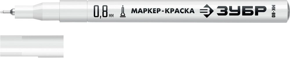 ПроизводителиМаркер перм., белый, на основе жидкой краски, толщ. письма 0.8мм "МК-80" (06324-8) ЗУБР