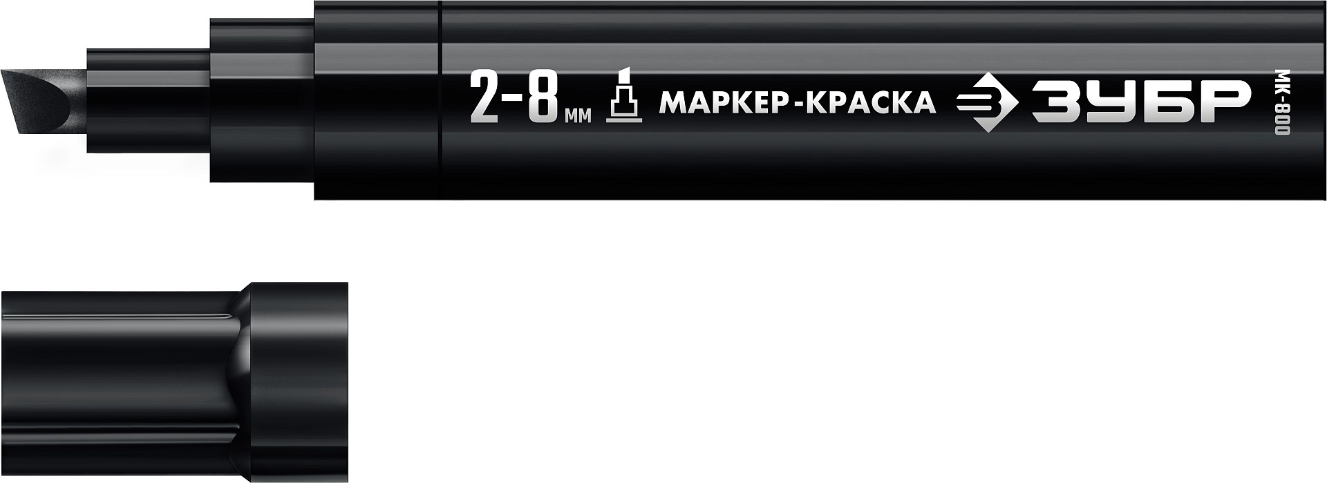 ПроизводителиМаркер-краска, черный, клиновидный, экстрабольшой объем, толщ. письма 2-8мм "МК-800" (06327-2) ЗУБР