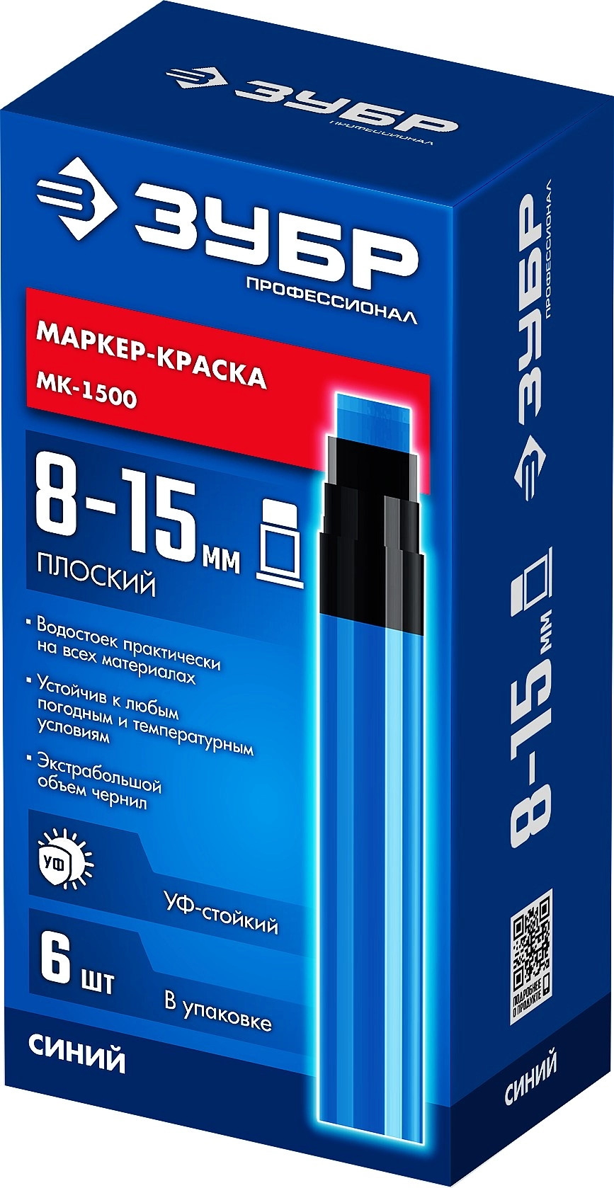 ПроизводителиМаркер-краска, синий, плоский, экстрабольшой объем, толщ. письма 8-15мм "МК-1500" (06329-7) ЗУБР