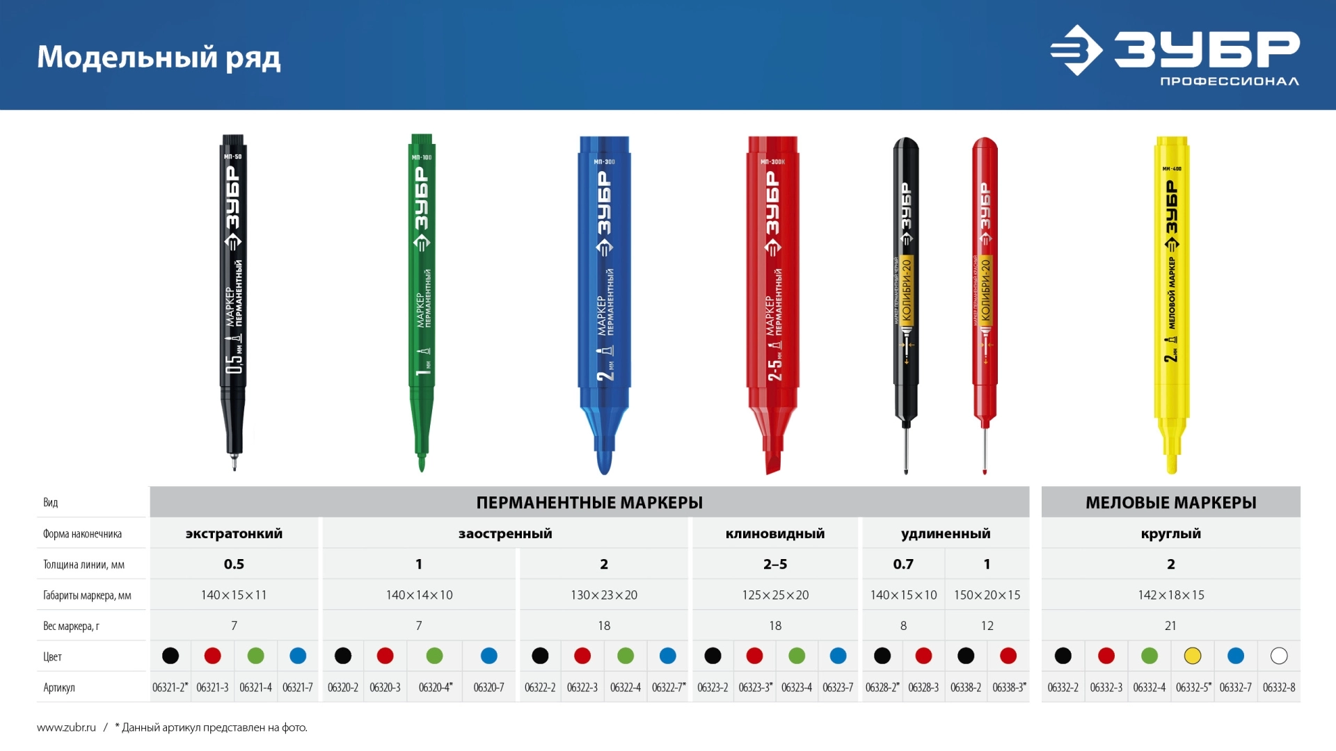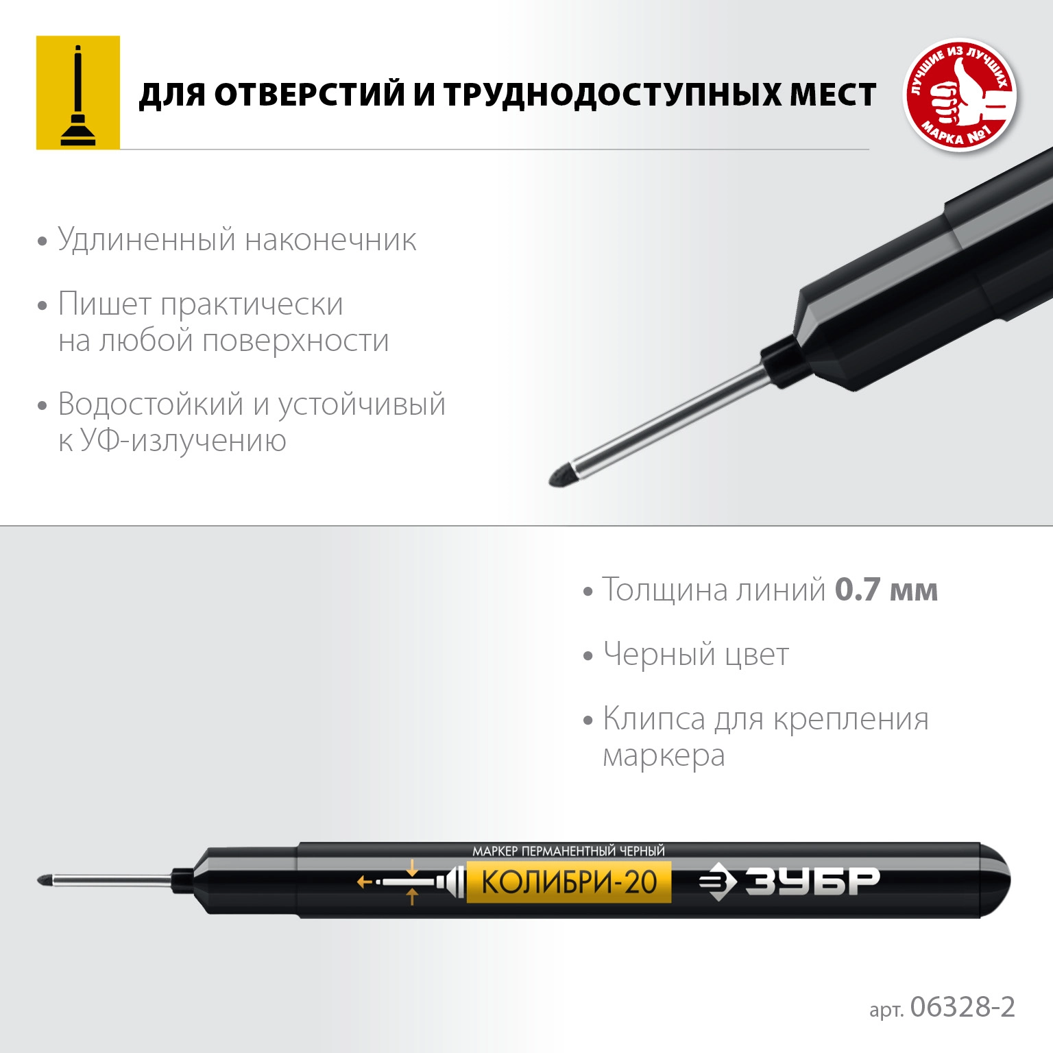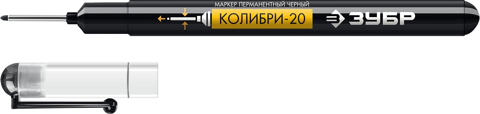ПроизводителиМаркер перм., черный, толщ. письма 0.7-1.0мм, для отверстий "Колибри-20" (06328-2_z01) ЗУБР