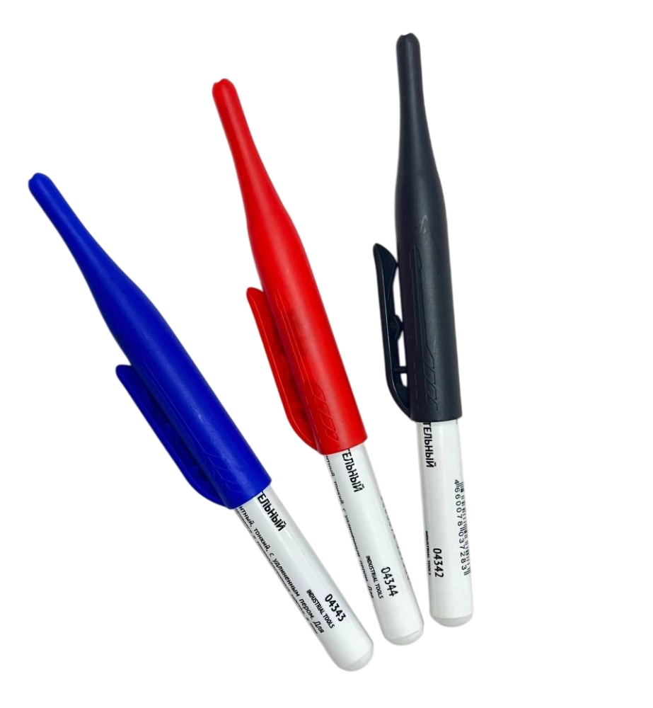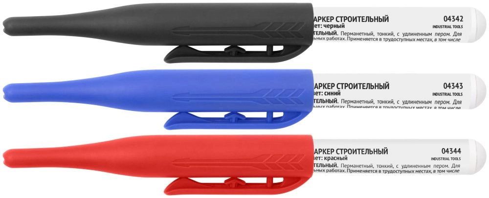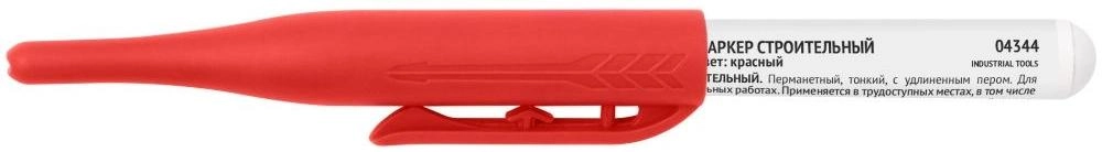 Перманентный. Тонкий, с удлиненным пером. Толщина линии 1 мм. Для разметки при проведении строительных работ. Применяется в труднодоступных местах, в том числе для разметки через отверстие. Возможно применение по большинству материалов (картон, металл, пластик, стекло и т.д.) Материал: пластик, акрил, чернила на спиртовой основе.Производитель: