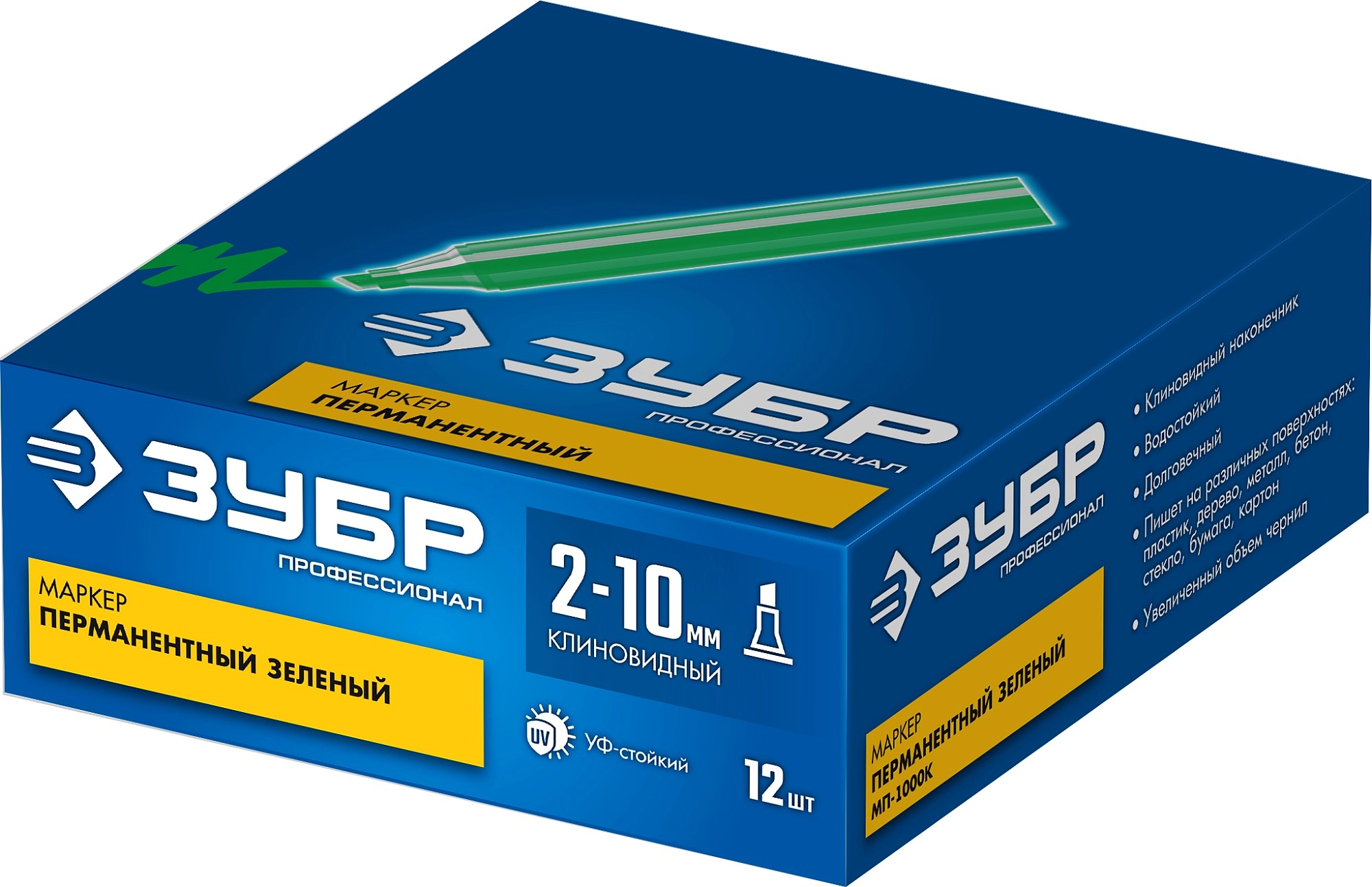 ПроизводителиМаркер перм., зеленый, толщ. письма 2-10мм, клиновидный "МП-1000К" (06333-4) ЗУБР