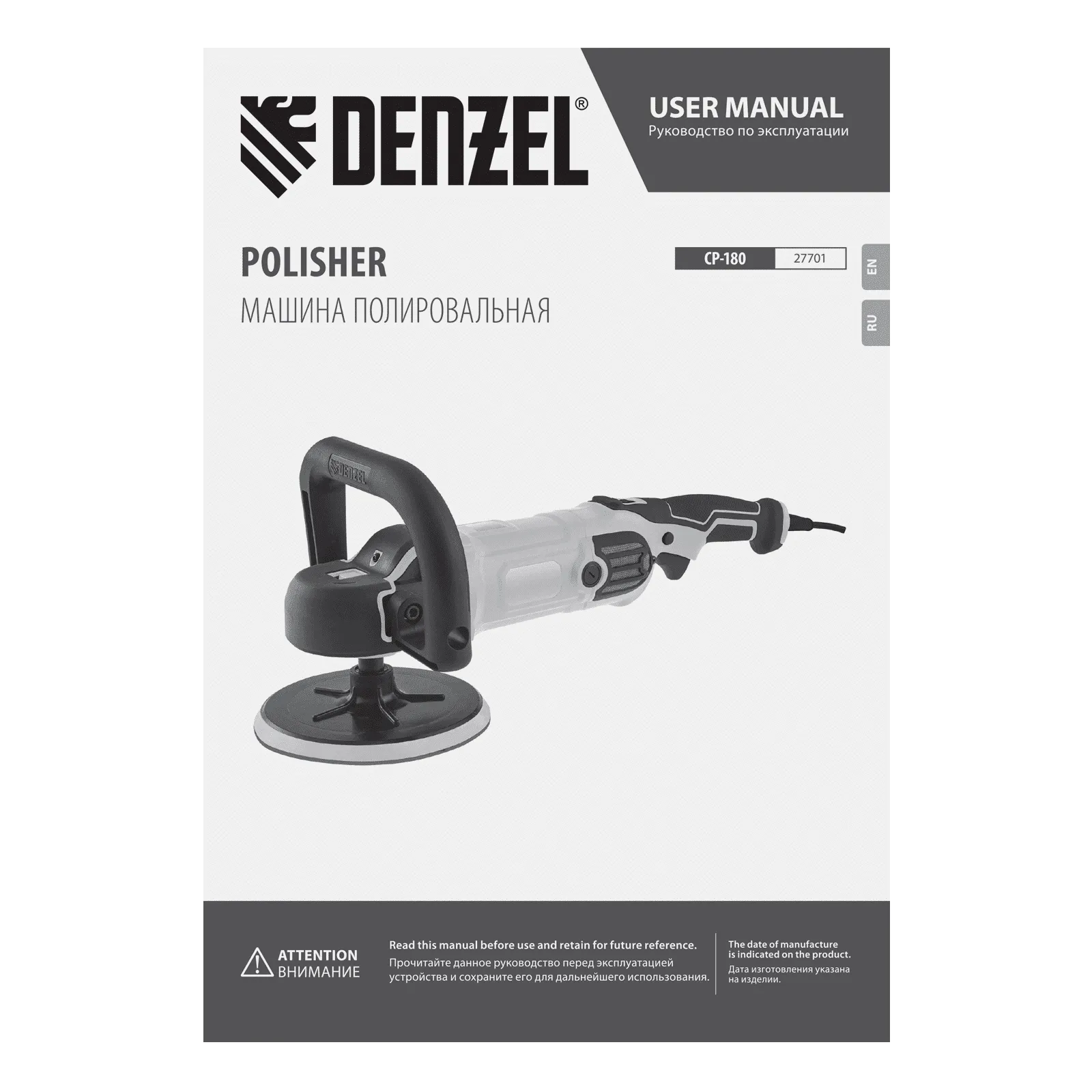 ПроизводителиМашина полировальная CP-180, 1400 Вт, 180 мм, 0-3000 об/мин Denzel