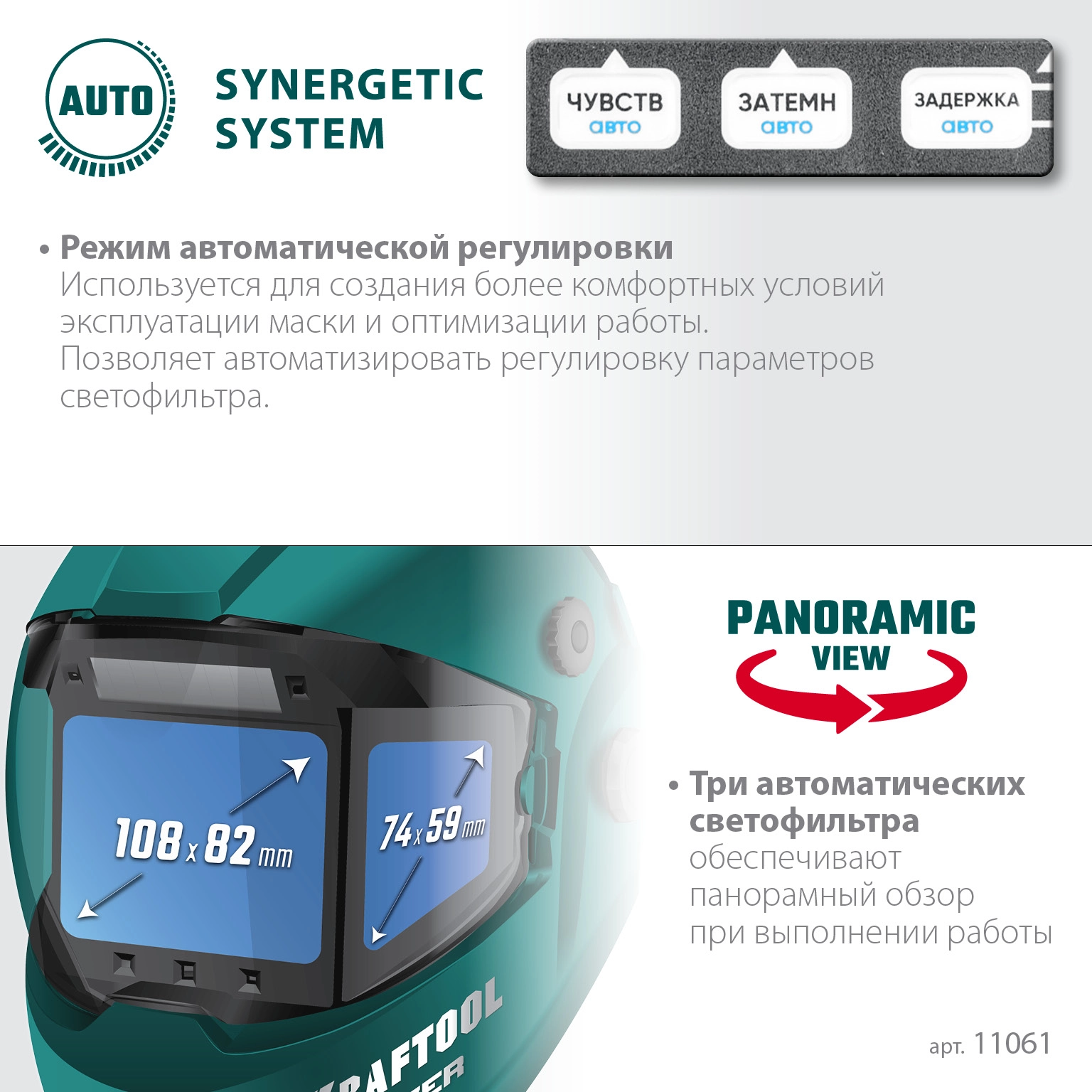 ПроизводителиМаска сварщ, с панорам трёхсторон светофильтром, затем 3/4-8/9-14, PANZER хамелеон (11080_z01) ЗУБР
