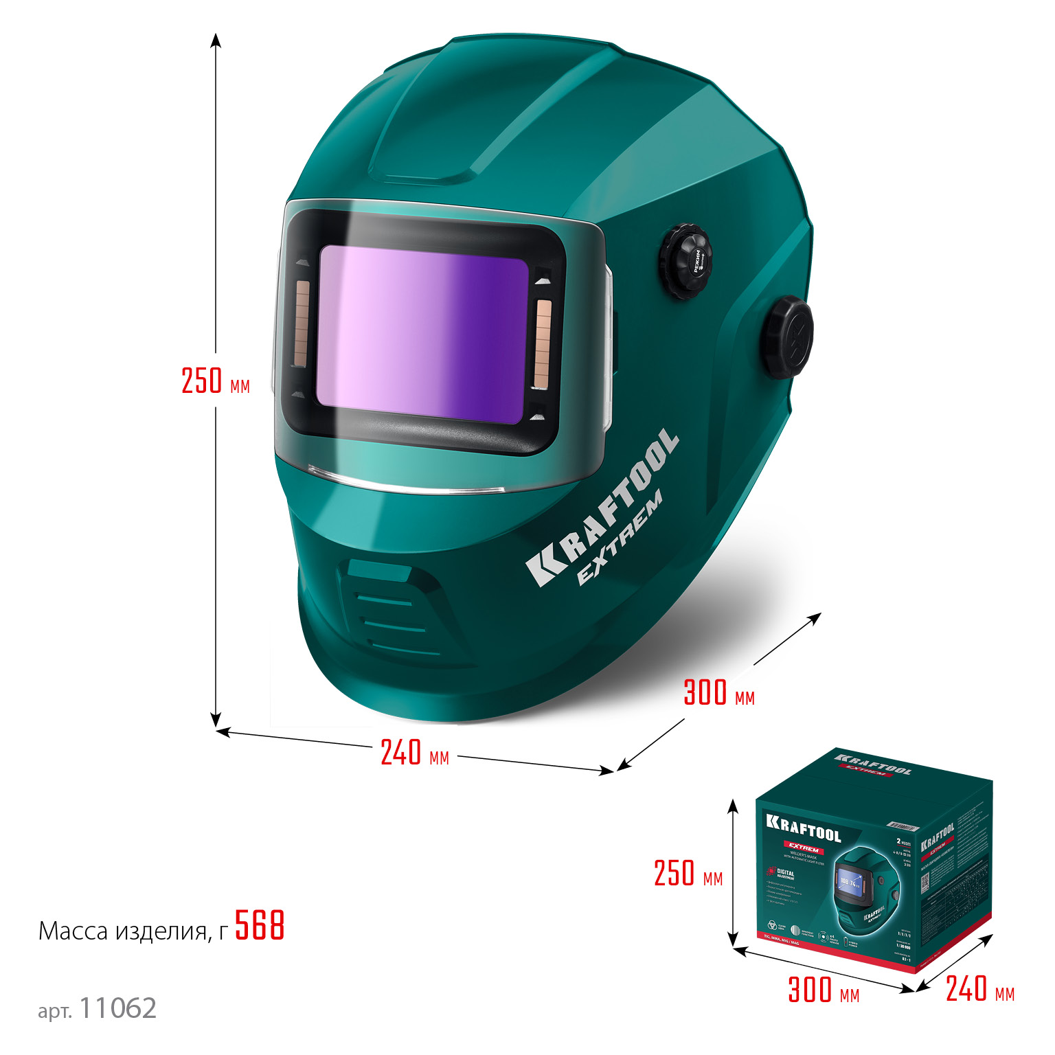 ПроизводителиМаска сварщика с автом. светофильтром, Хамелеон, затемнение 3/4-8/9-13 "EXTREM"(11062) KRAFTOOL