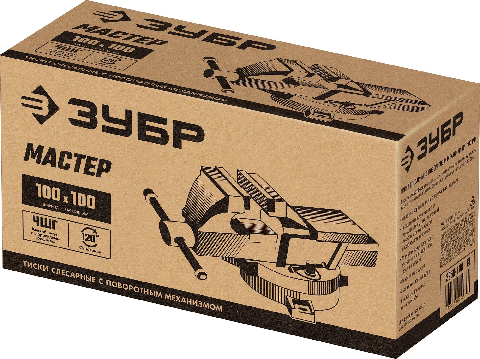 ПроизводителиТиски слесарные чугунные, поворотные 100мм (3258-100_z02) ЗУБР