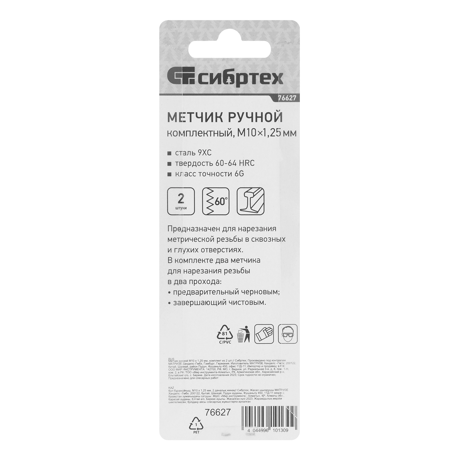 ПроизводителиМетчик ручной М10 х 1,25 мм, комплект из 2 шт (76627) СИБРТЕХ