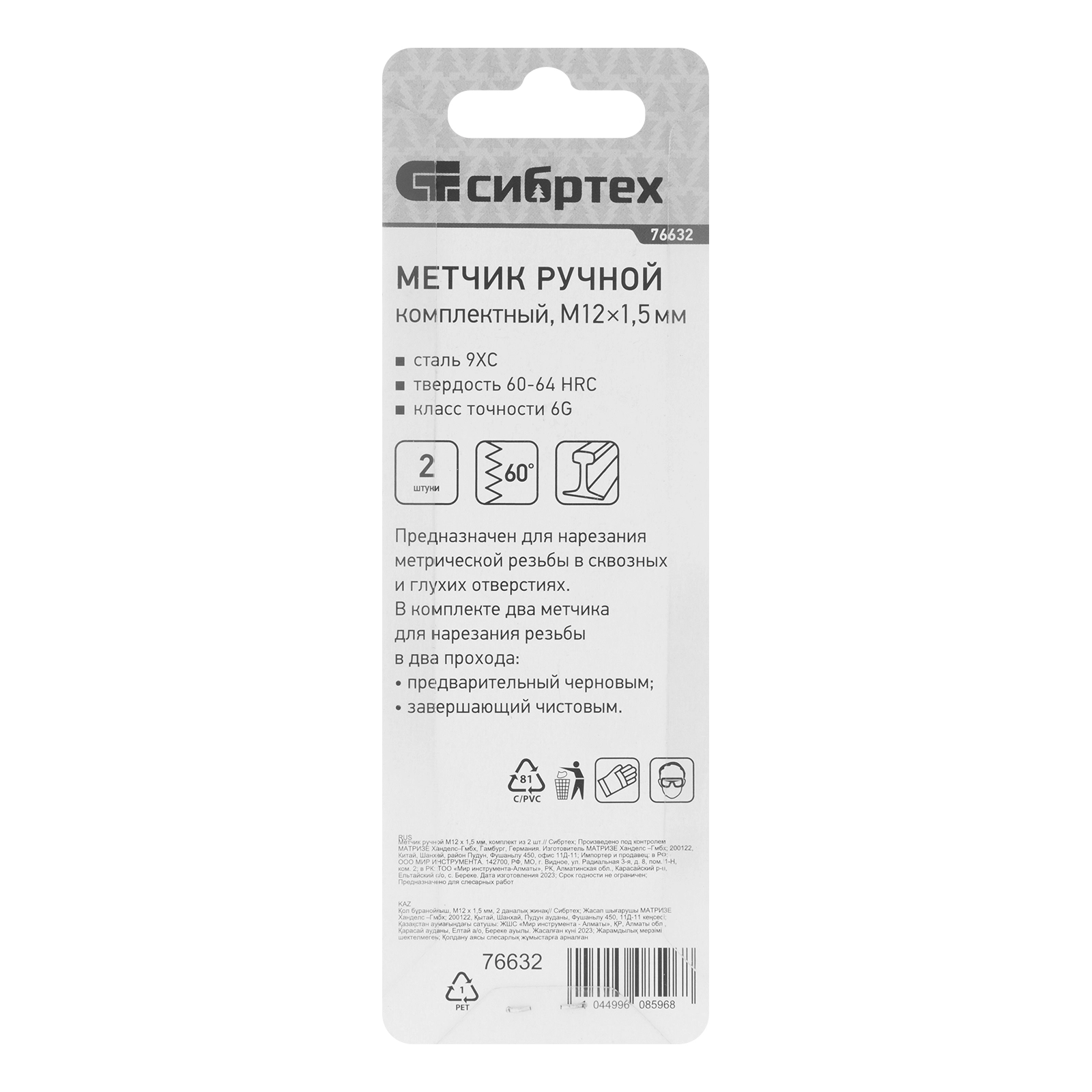ПроизводителиМетчик ручной М12 х 1,5 мм, комплект из 2 шт (76632) СИБРТЕХ