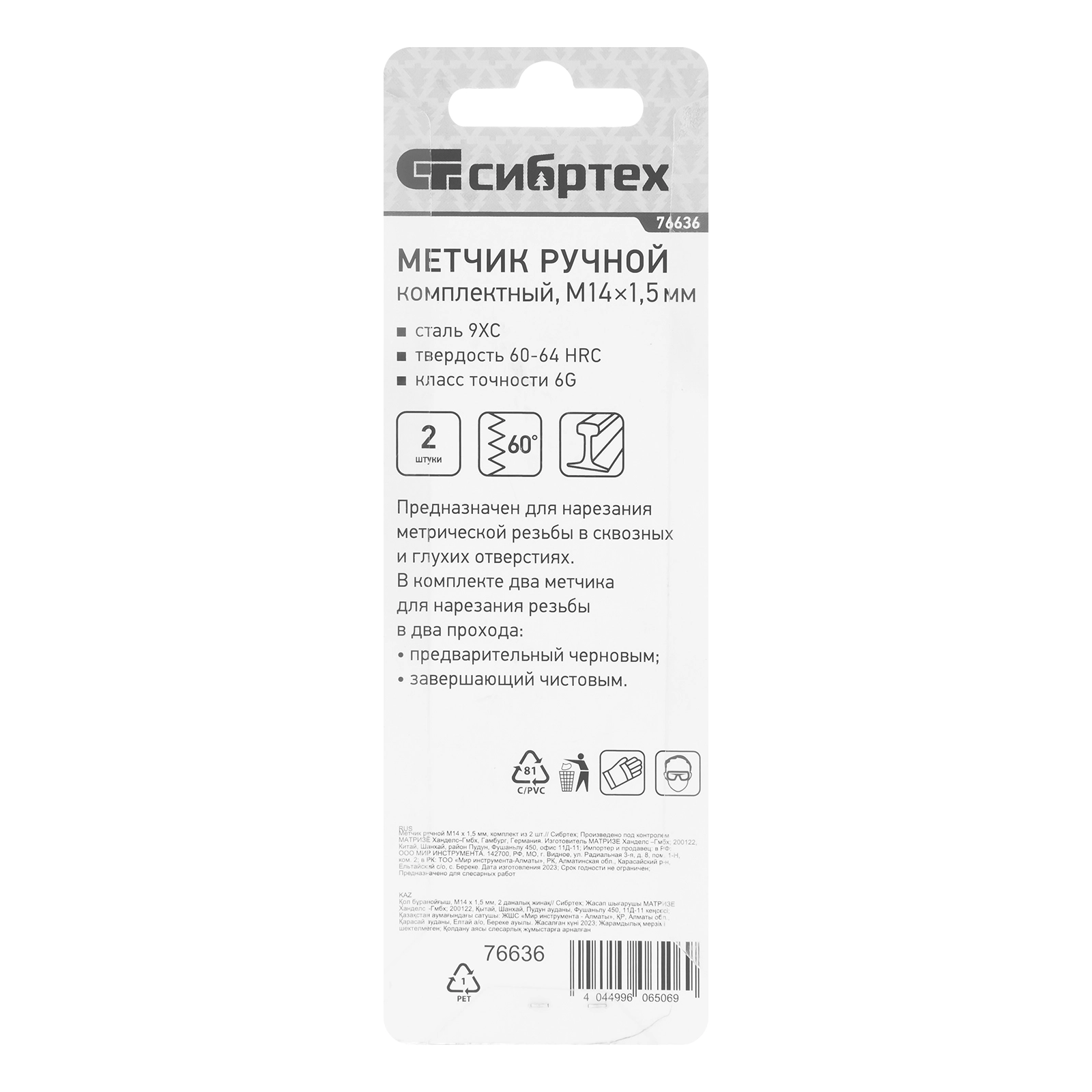 Ручной метчик Сибртех 76636 входит в комплект из 2 шт.