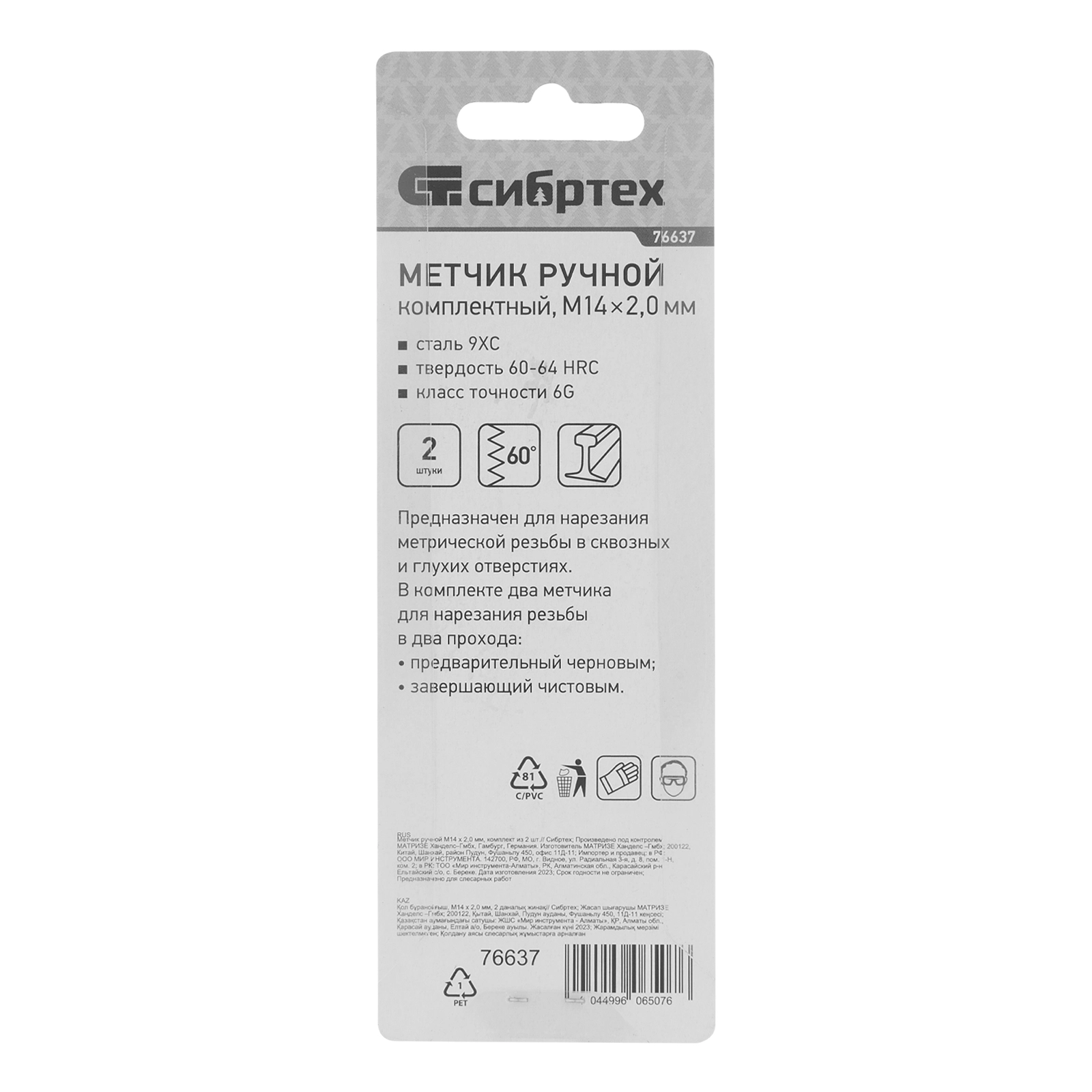 ПроизводителиМетчик ручной М14 х 2,0 мм, комплект из 2 шт (76637) СИБРТЕХ