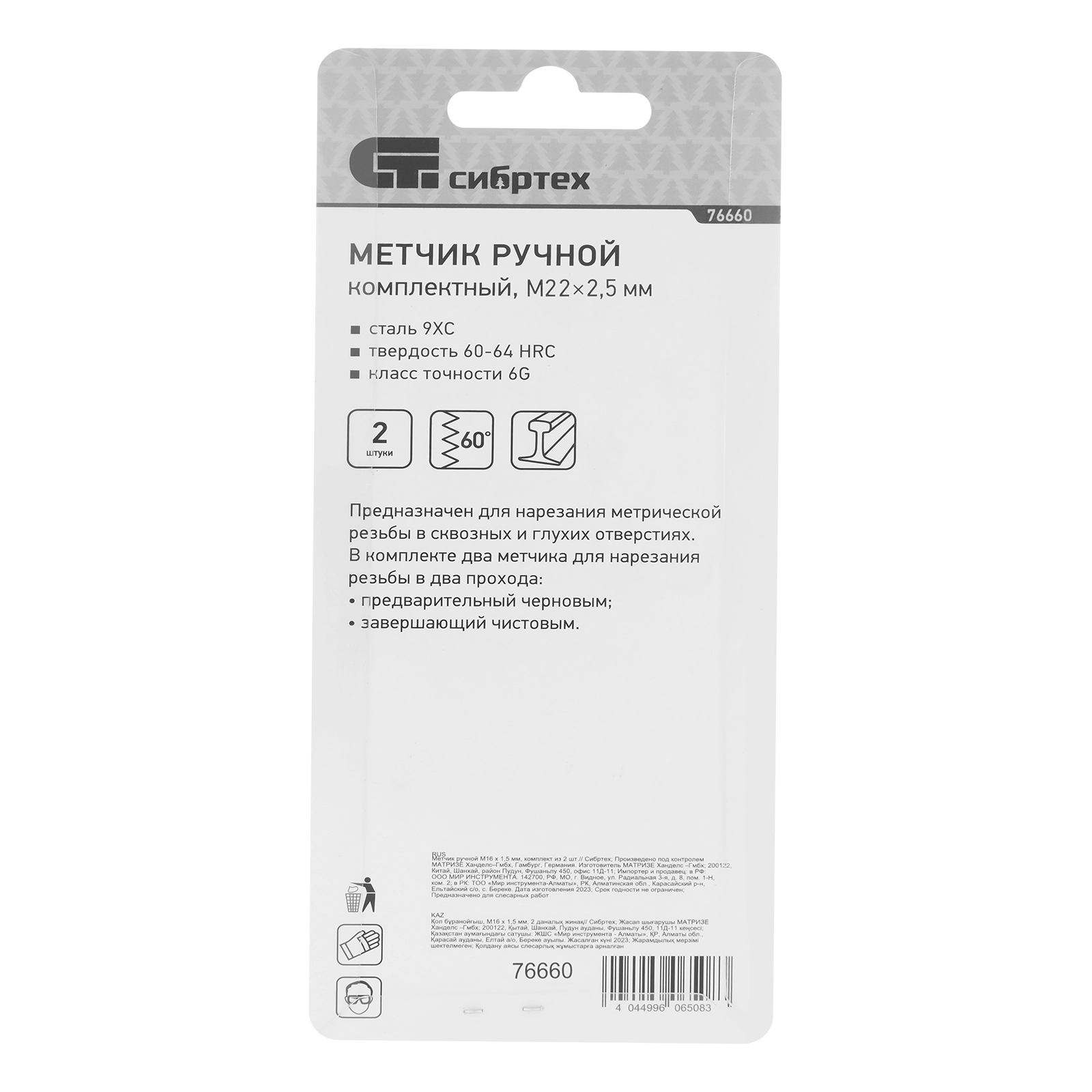 Ручной метчик Сибртех 76660 входит в комплект из 2 шт.