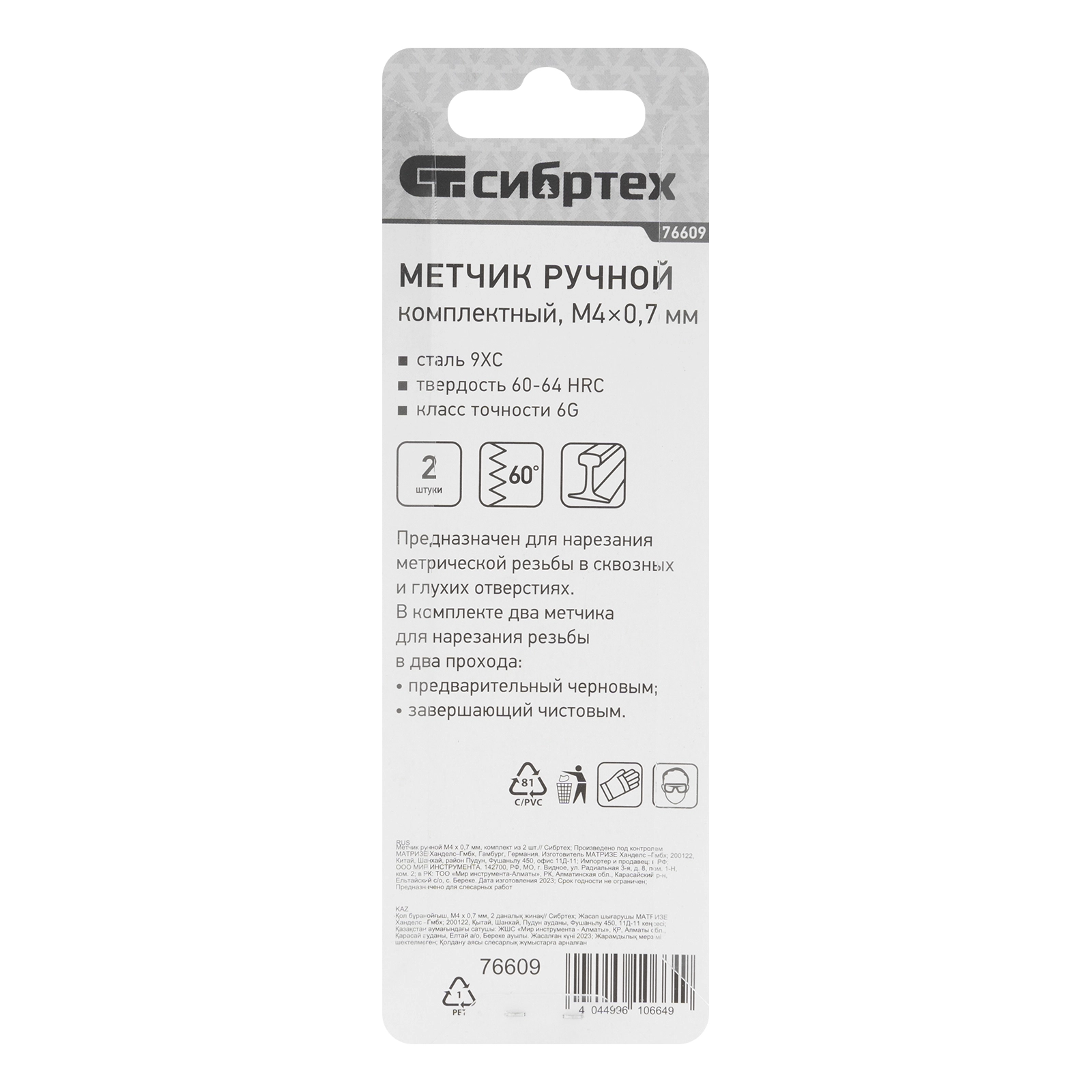 ПроизводителиМетчик ручной М4 х 0,7 мм, комплект из 2 шт (76609) СИБРТЕХ