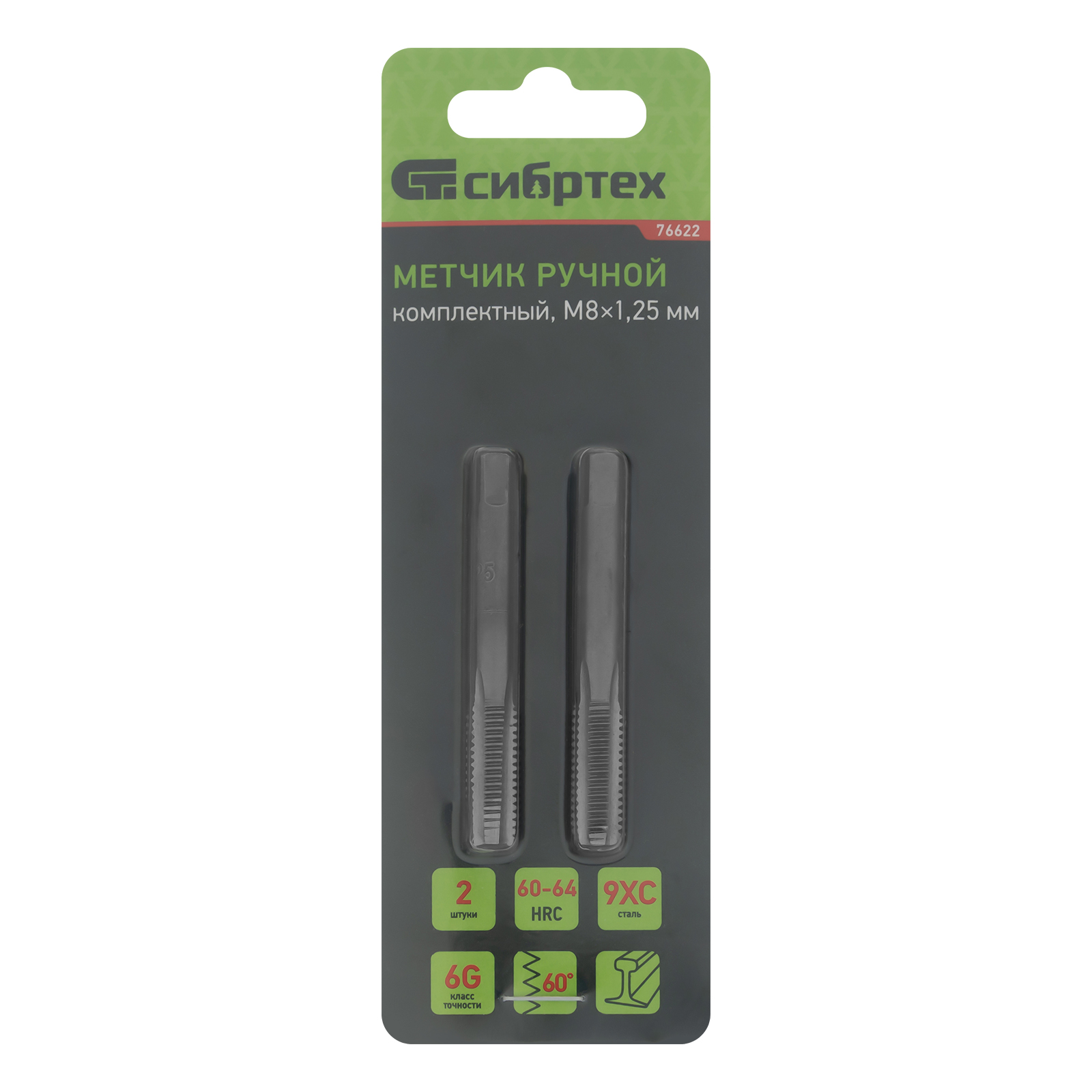 ПроизводителиМетчик ручной М8 х 1,25 мм, комплект из 2 шт (76622) СИБРТЕХ