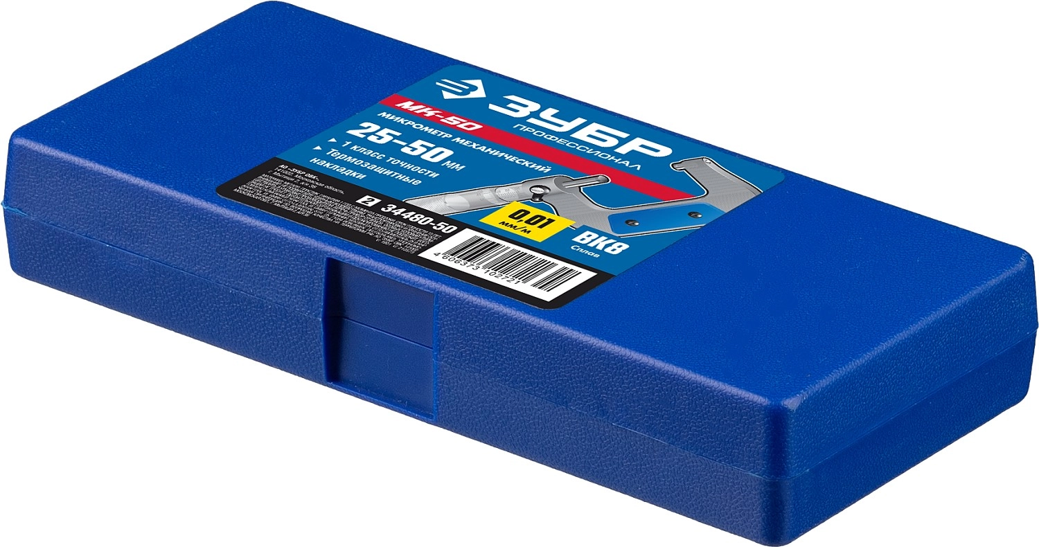 ПроизводителиМикрометр гладкий механический, МК 50, диапазон 25-50мм, шаг изм. 0.01мм (34480-50_z02) ЗУБР